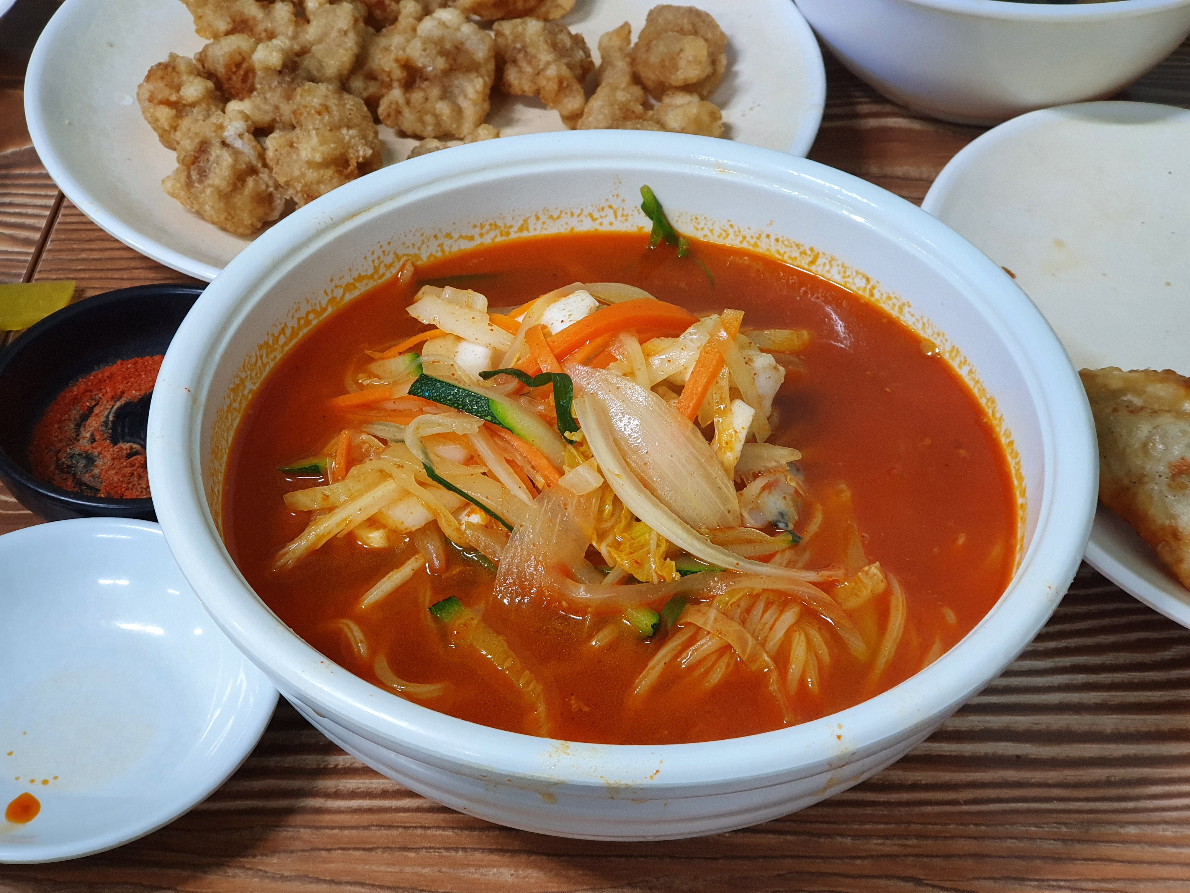 오징어랑 야채가 정말 신선하고 국뮬이 아주 깔끔해서 좋았어요.