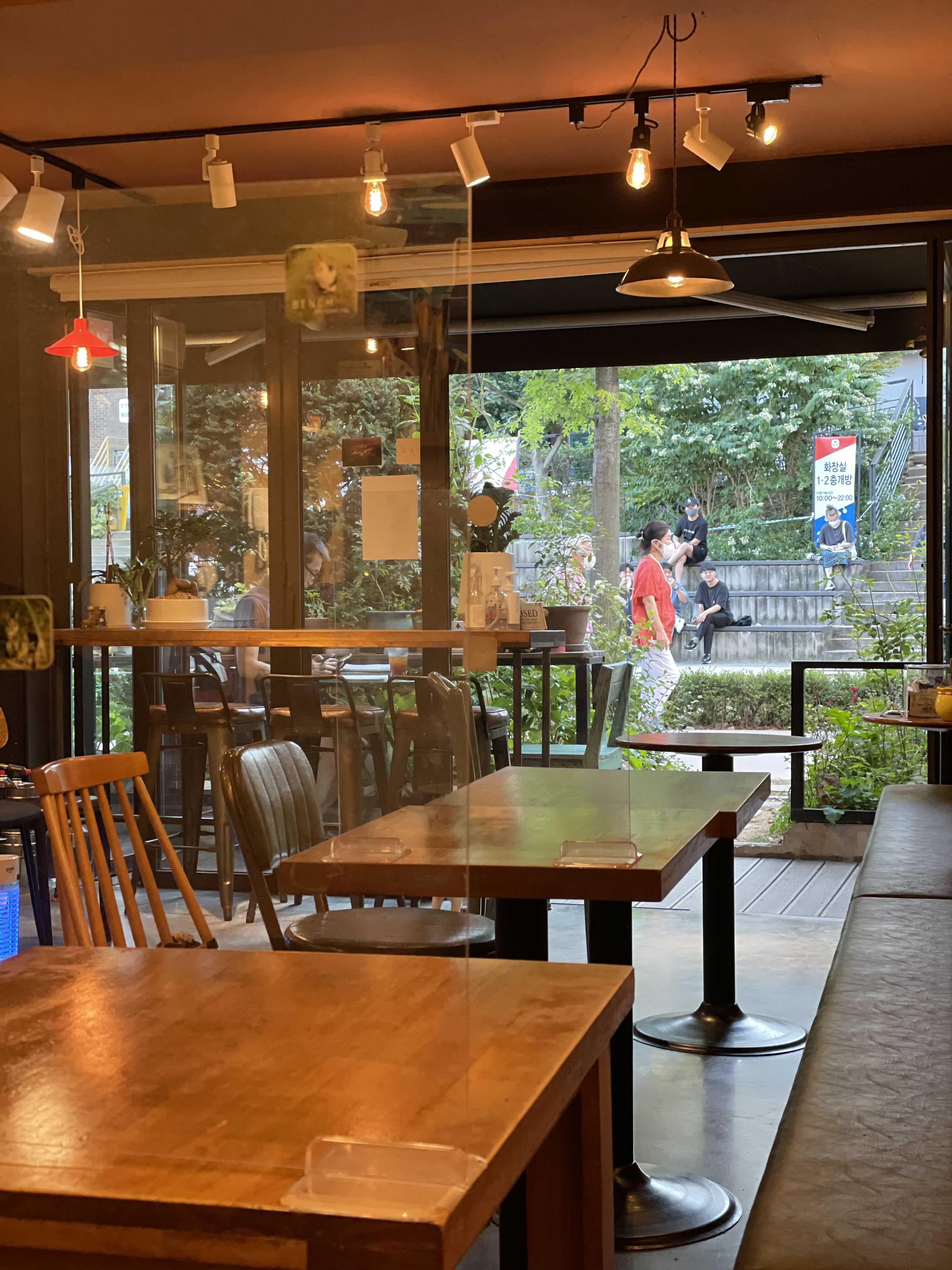 창가 자리에서 보이는 바깥풍경이 참 좋아요