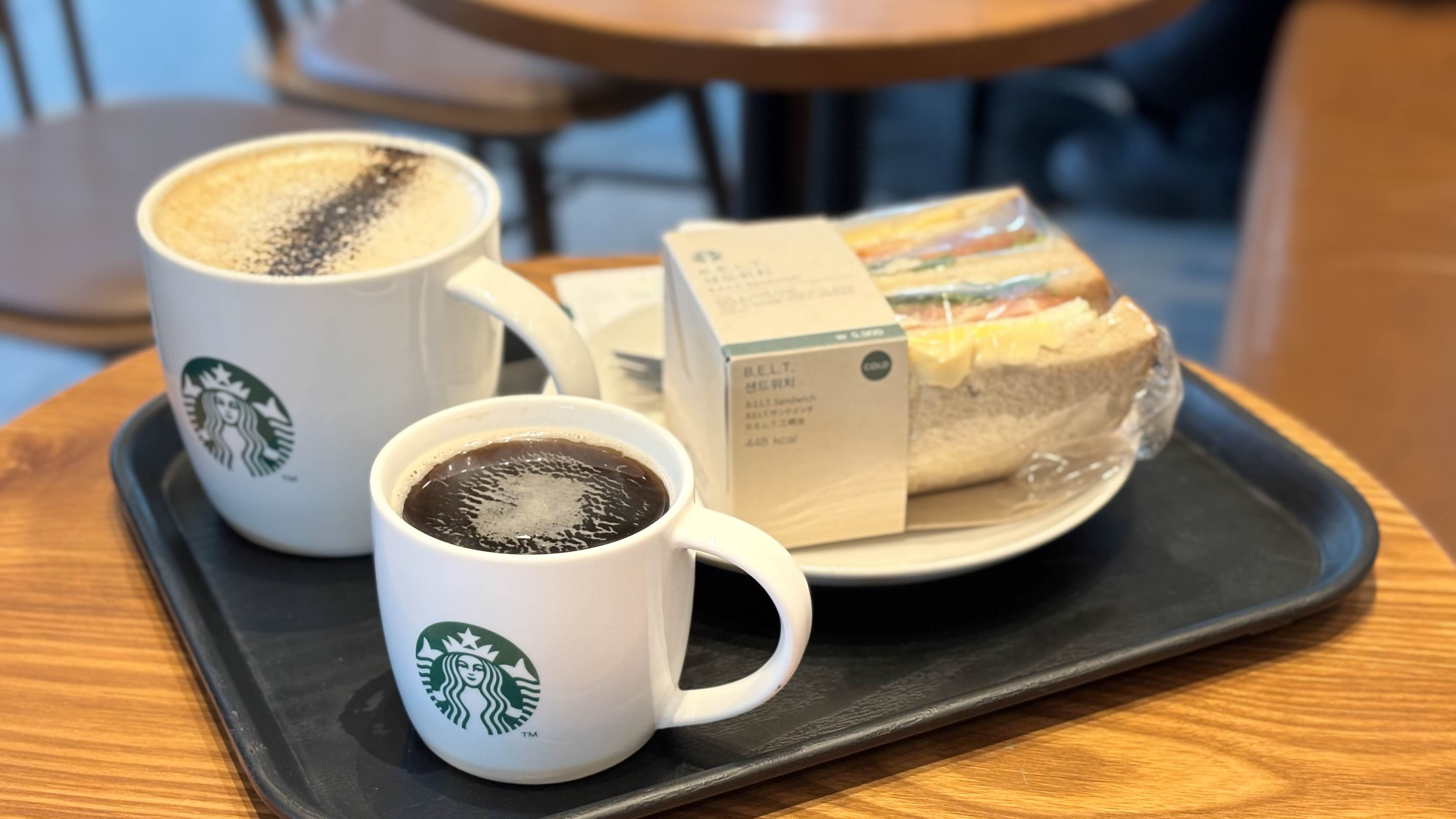 오늘 제가 스타벅스에서 주문한 메뉴는 더블 에스프레소크림 라떼랑 아메리카노 입니다 그리고 B E L T 샌드위치도 함께 시켰어요 스타벅스 샌드위치는 먹을 때마다 느끼지만 사실 조금 아쉬운 거 같아요 그래도 가격이 생각보다 착한 편이라 간단하게 먹기 괜찮은 것 같습니다