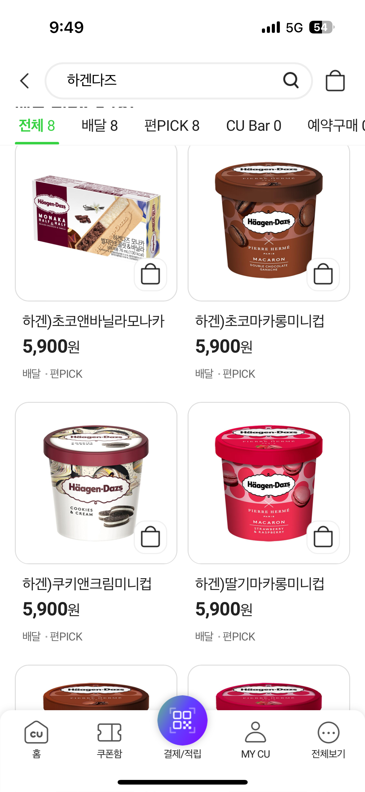 참고로 cu 편의점에서는 하겐다즈 크리스피 샌드를 판매하지 않습니다 대신 하겐다즈 모나카를 판매하더라구요