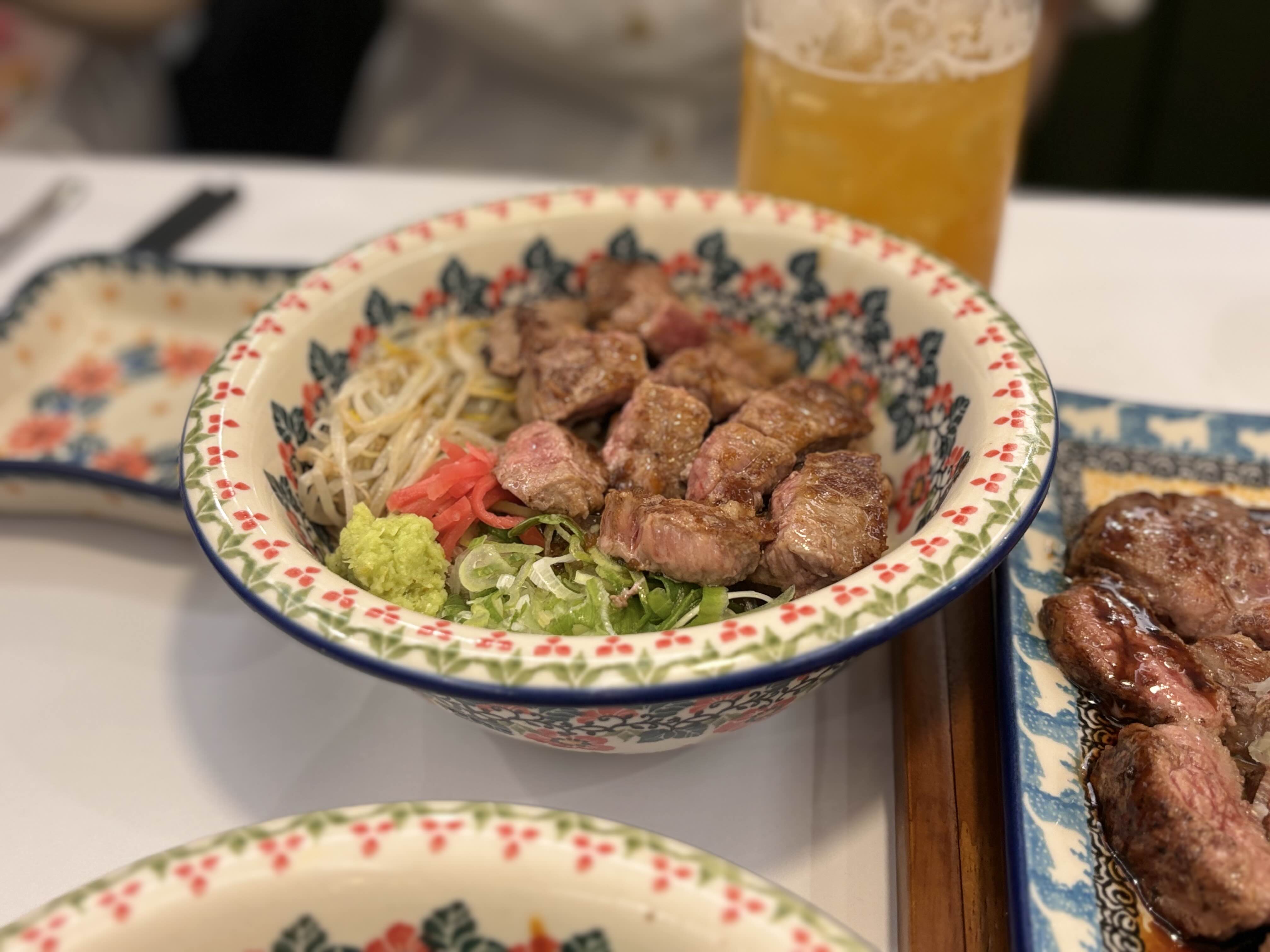 이거는 스테이크 덮밥이고 아래는 샐러드입니다