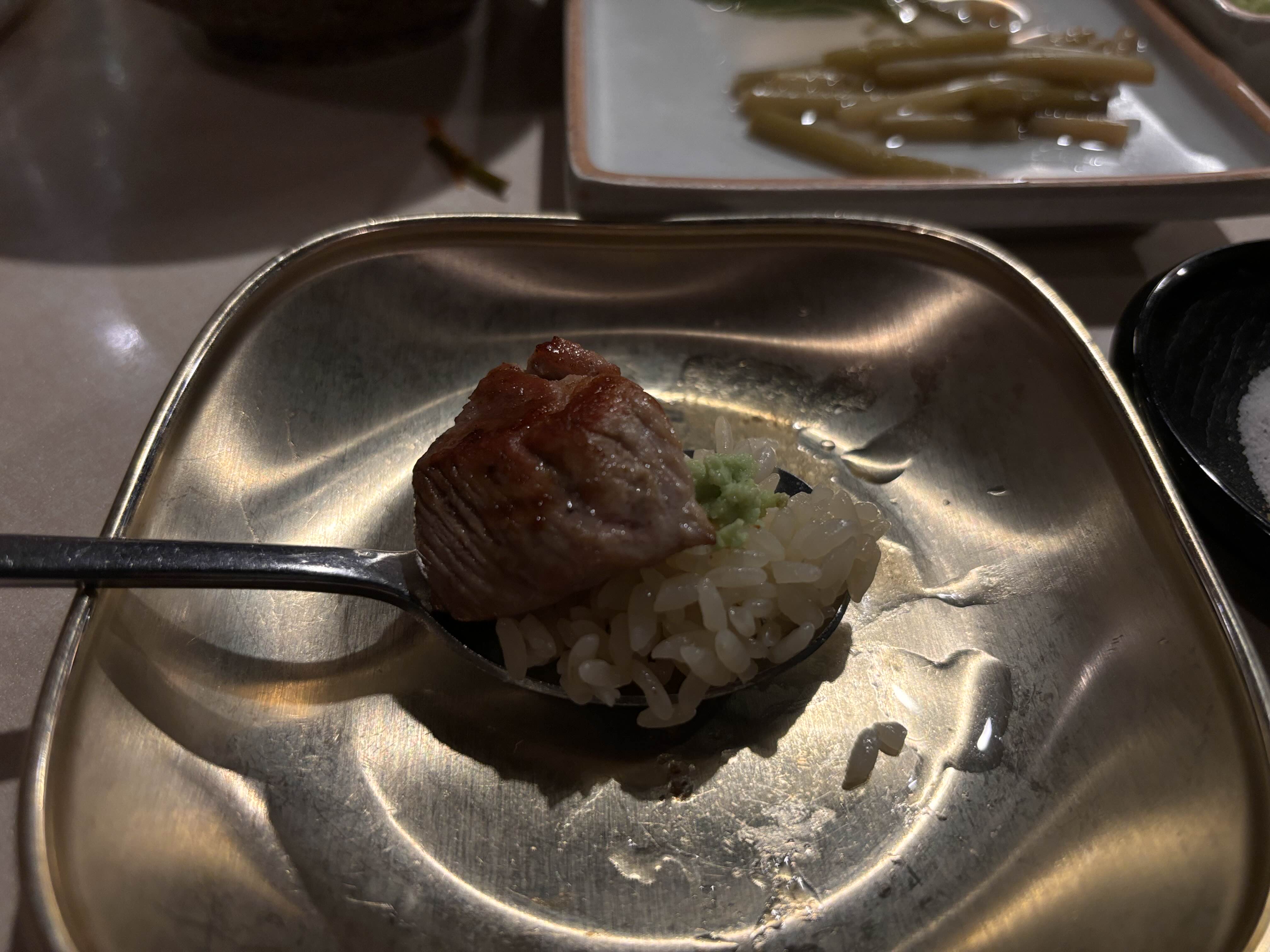 밥에 고기 올리고 와사비 올려서 고기초밥 느낌으로 먹으라고 하더군요