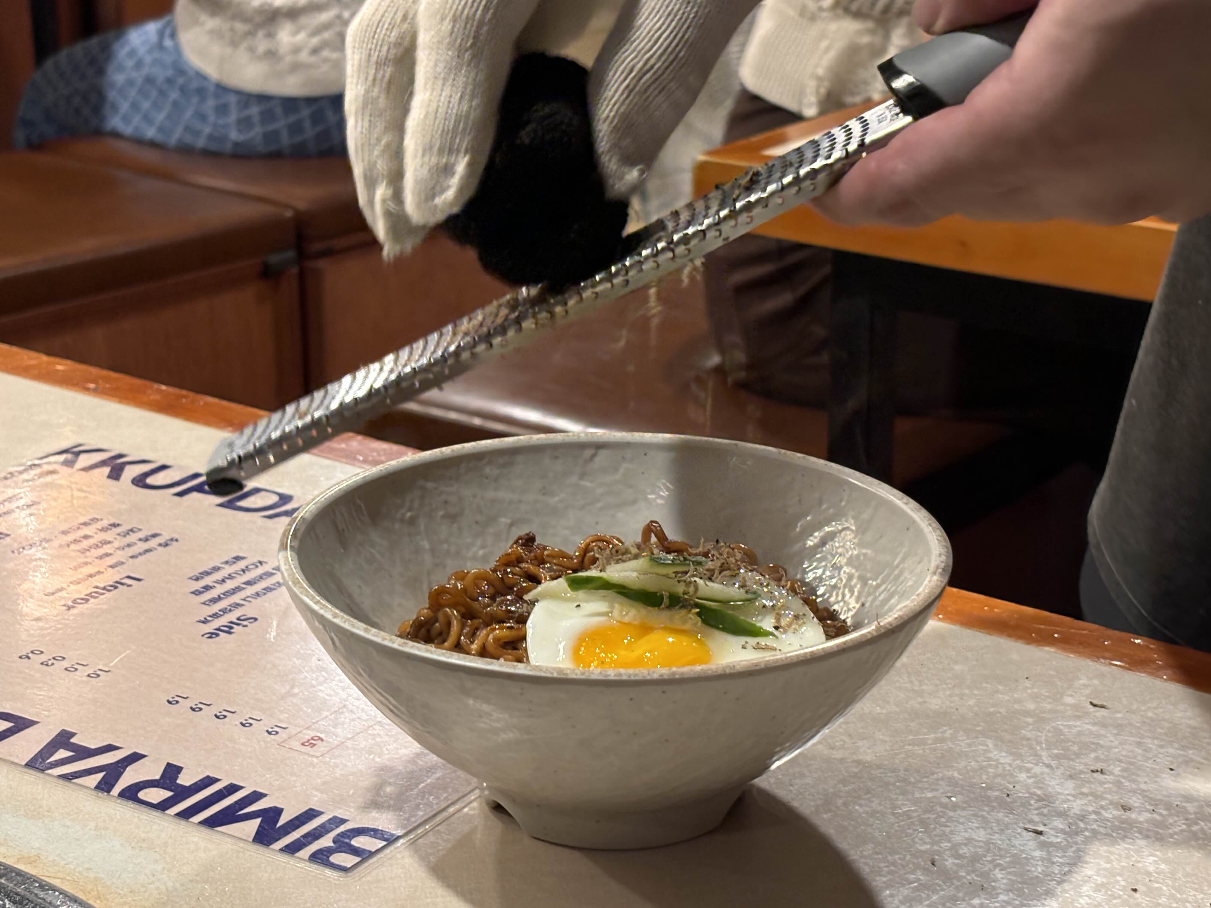 트러플 버섯을 가지고 나와서 직접 짜파위에 갈아서 올려줍니다 이렇게 현장에서 트러플을 갈아주는 음식은 첨이라 넘 기대되었어요