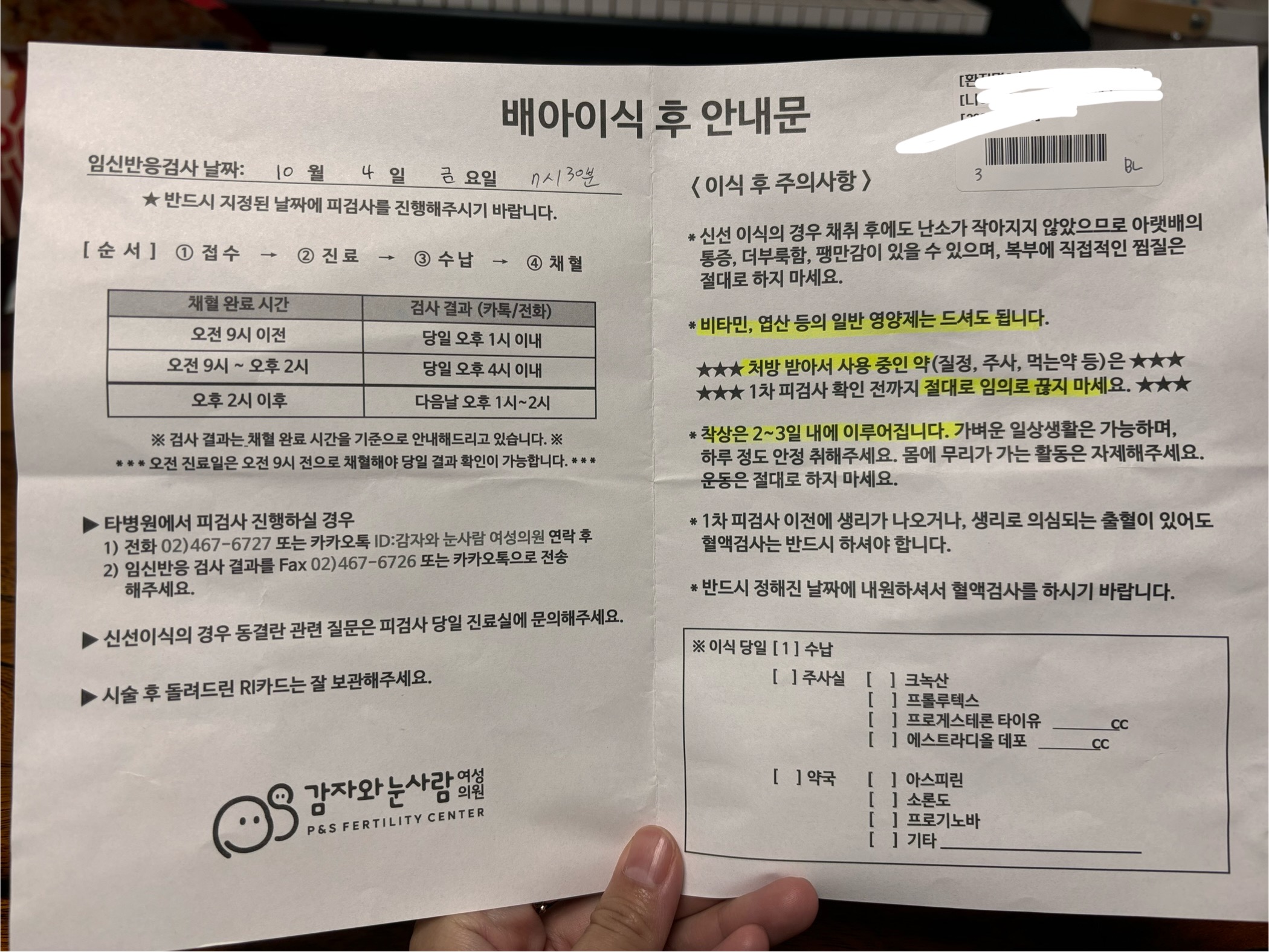 냉동배아이식 주의사항이라면 주사와 약을 잘 챙기는것