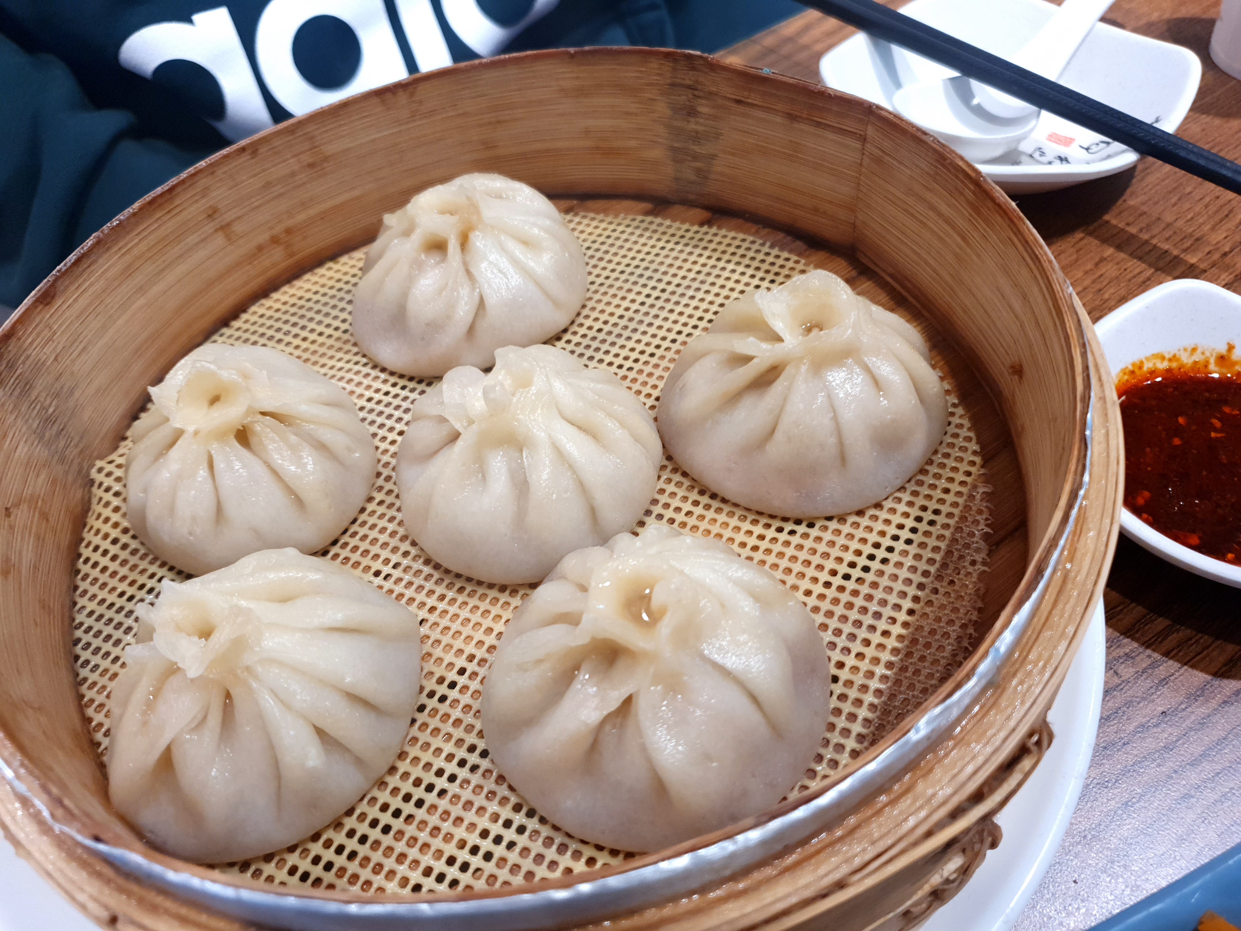마지막으로 육즙가득한 만두란의 시그니쳐 샤오롱빠오가 나왔습니다. 딱봐도 뜨거운게 느껴져요. 수저에 올리고 젓가락으로 구멍을 뚫어서 육즙을 호호불어 마시고. 만두를 낼름 먹으먄 입안 가득 고기파티입니다. ㅎ 다만 저는 특유의 미세한 고기향? 향신료향? 이 느껴져서 많이는 못먹었어요. 제 입맛에는 새우야채딤섬이 더 맛잇네요.