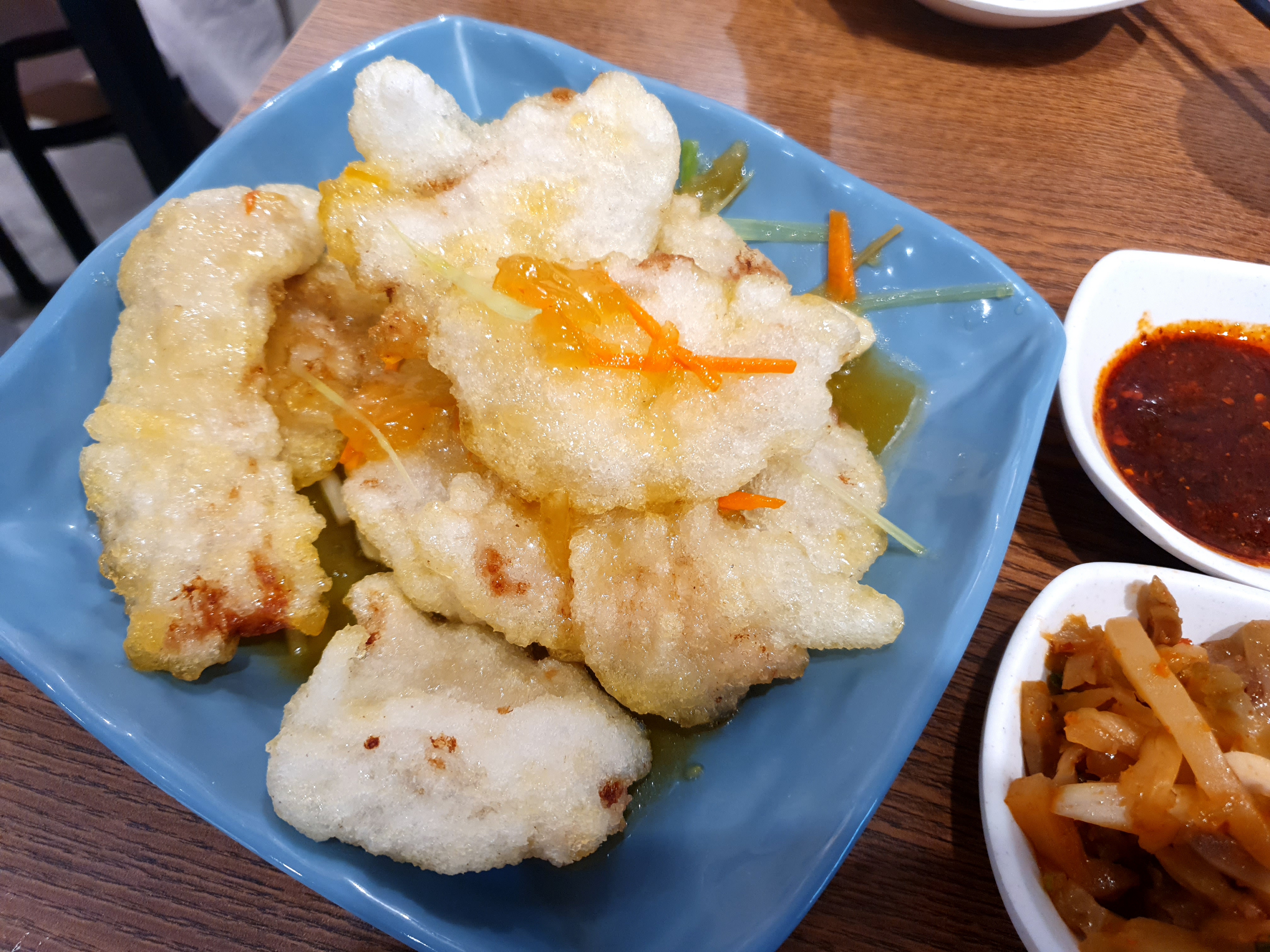 유자소스에 담겨서 나왔는데. 고기가 정말 부드럽고 튀김운 바삭바삭 아주 제스타일입니다. 양꼬치집에서 꿔바오로우 시켰을때 실망한 적이 종종 있었는데. 이집은 고기도 소스도 매우 제스타일입니다. 유자소스의 상큼함이 부담이 된다면 간장소스를 만들어서 찍어먹으면 매우 훌륭합니다.