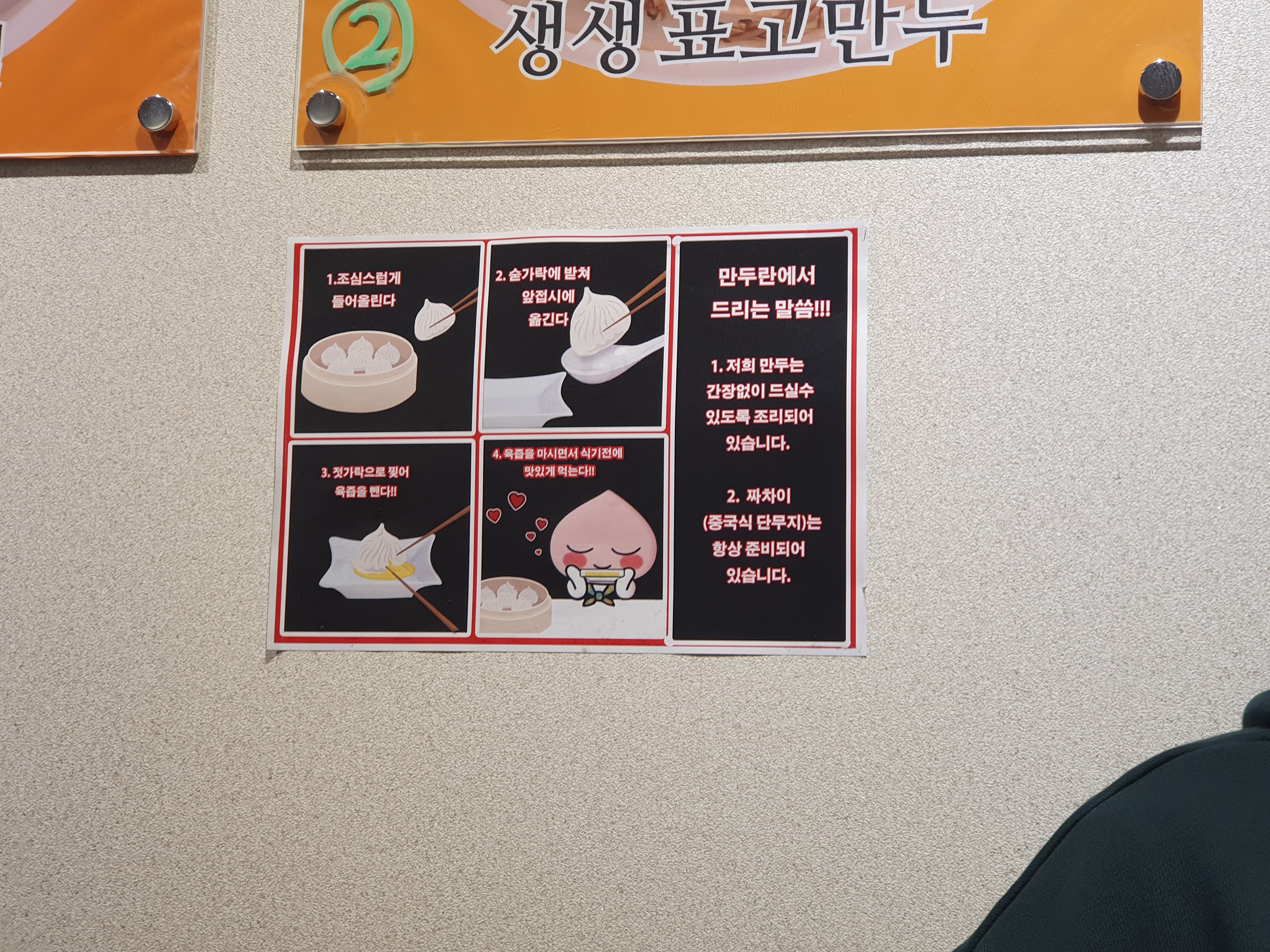 벽면에는 맛잇는 만두를 소개하는 사진들이 있고. 샤오롱빠오를 맛있게 먹는 방법이 소개되어있습니다. 예전 중국에서 갓나온 샤오롱빠오를 이렇게 먹었었는데. 이거를 보니 더욱 기대감이 가득되었습니다.