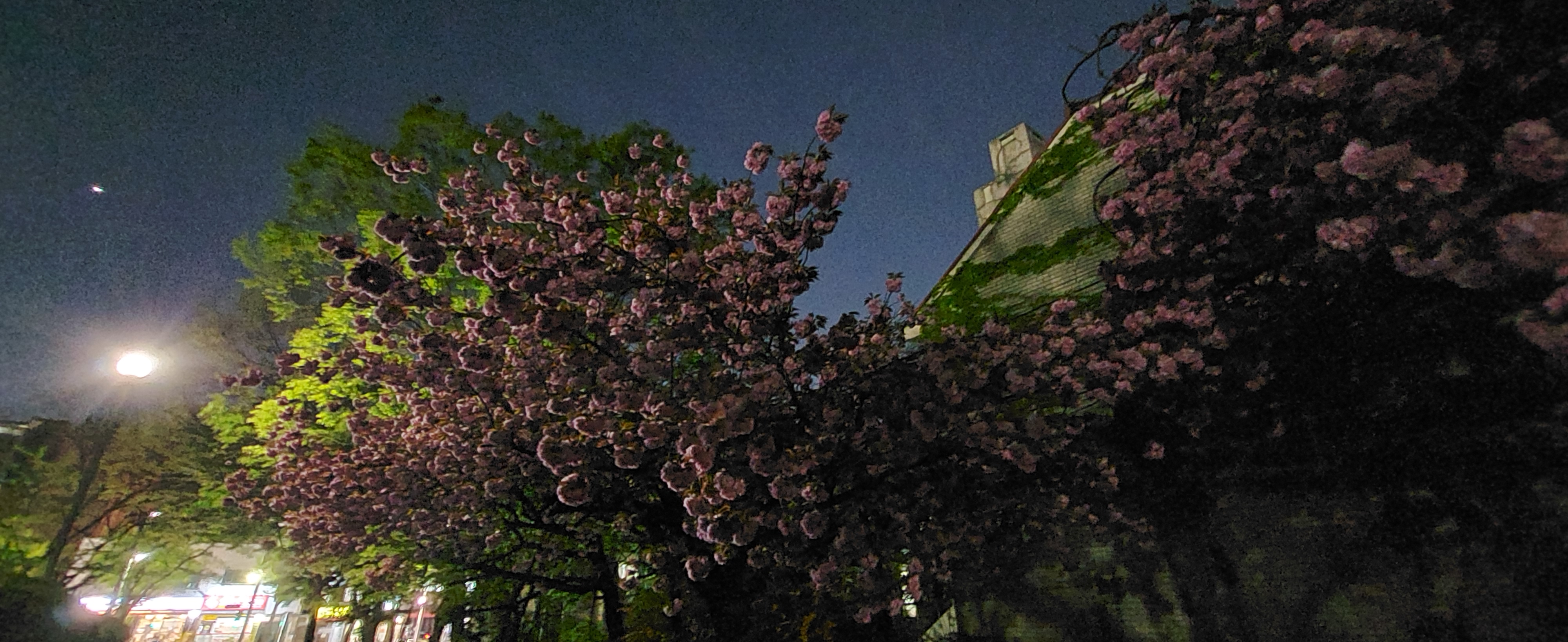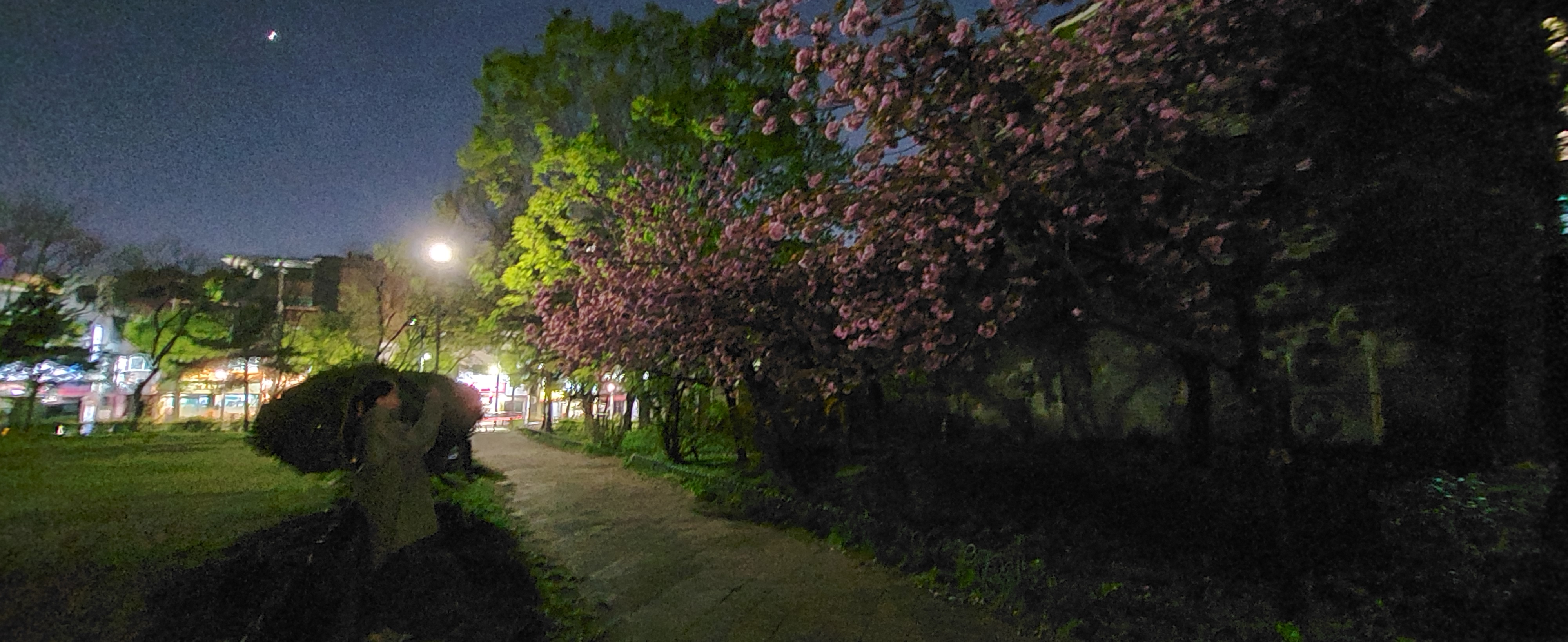노이즈는 있지만 그래도 겹벚꽃을 담을 수 있다니 정말 좋네요. 야간에도 즐기는 밪꽃놀이 입니다.