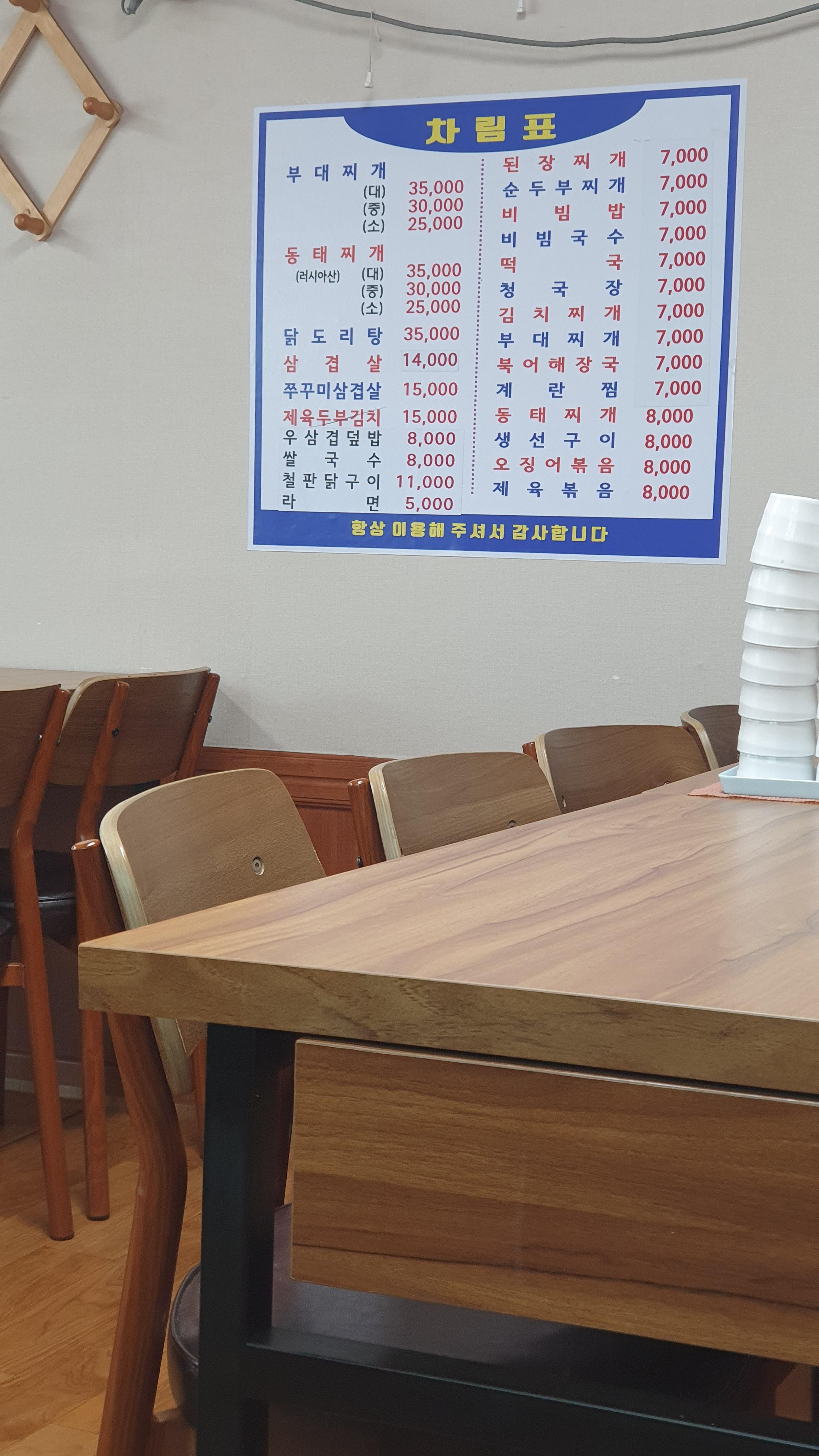 저희는 간단하게 순두부찌개와 오징어볶음을 시켰습니다. 찌개와 볶음의 가격대는 7천원~8천원으로 합리적인 가격대를 유지하고 있습니다.