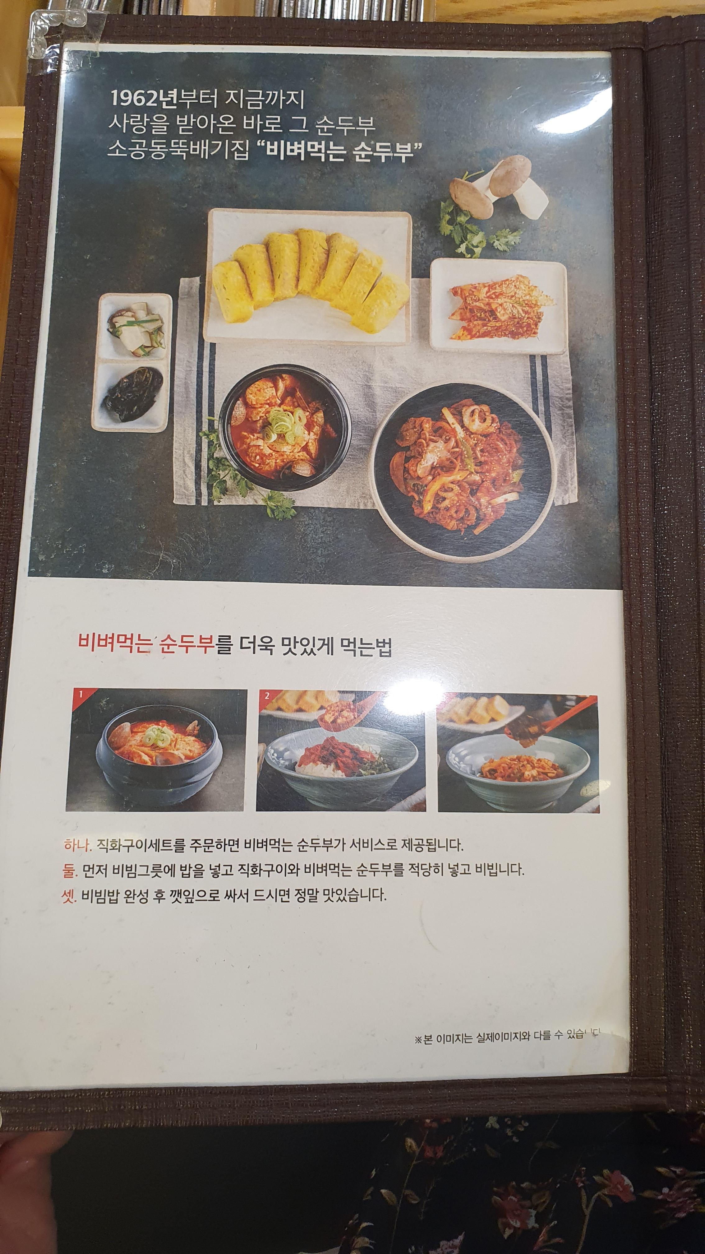 2인세트를 주문하고 잠시 기다리고 있는데. 소공동뚝배기 맛있게 먹는 법이 보이네요. 비빔그릇에 순부두와 직화구이를 넣어 삭삭 비벼 먹으면 정말 맛있다고 하네요. 그래서 저도 시도해보았습니다. 그런데 순두부 국물울 너무 많이 넣어서 비율 조절에 실패했어요. 맛은 있지만 밥이 촉촉해져서 비빔밥느낌이 아니었어요. 비빌 때에는 순두부 국물은 비벼질 정도로 조금만 넣는 것이 답이네요.