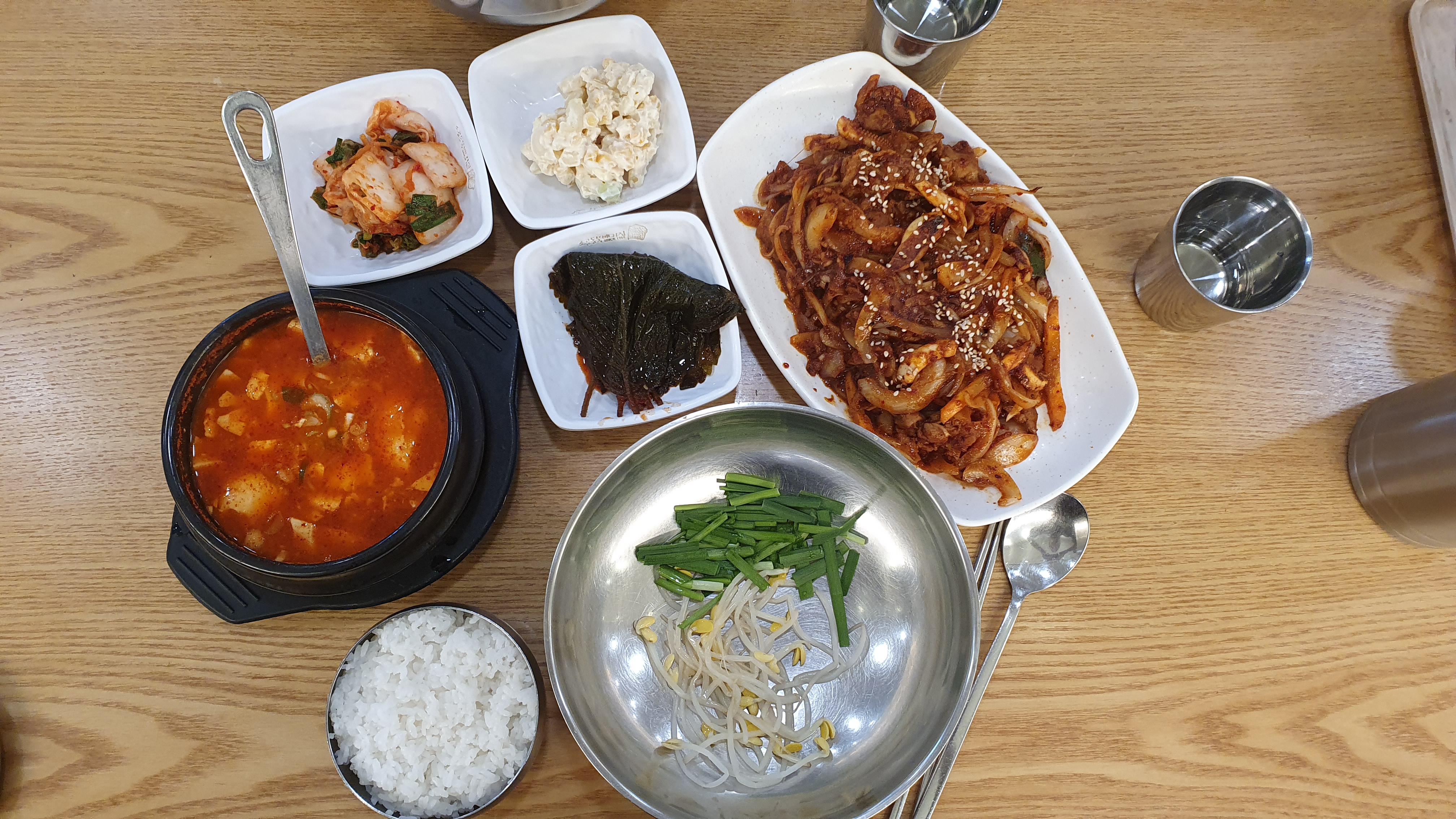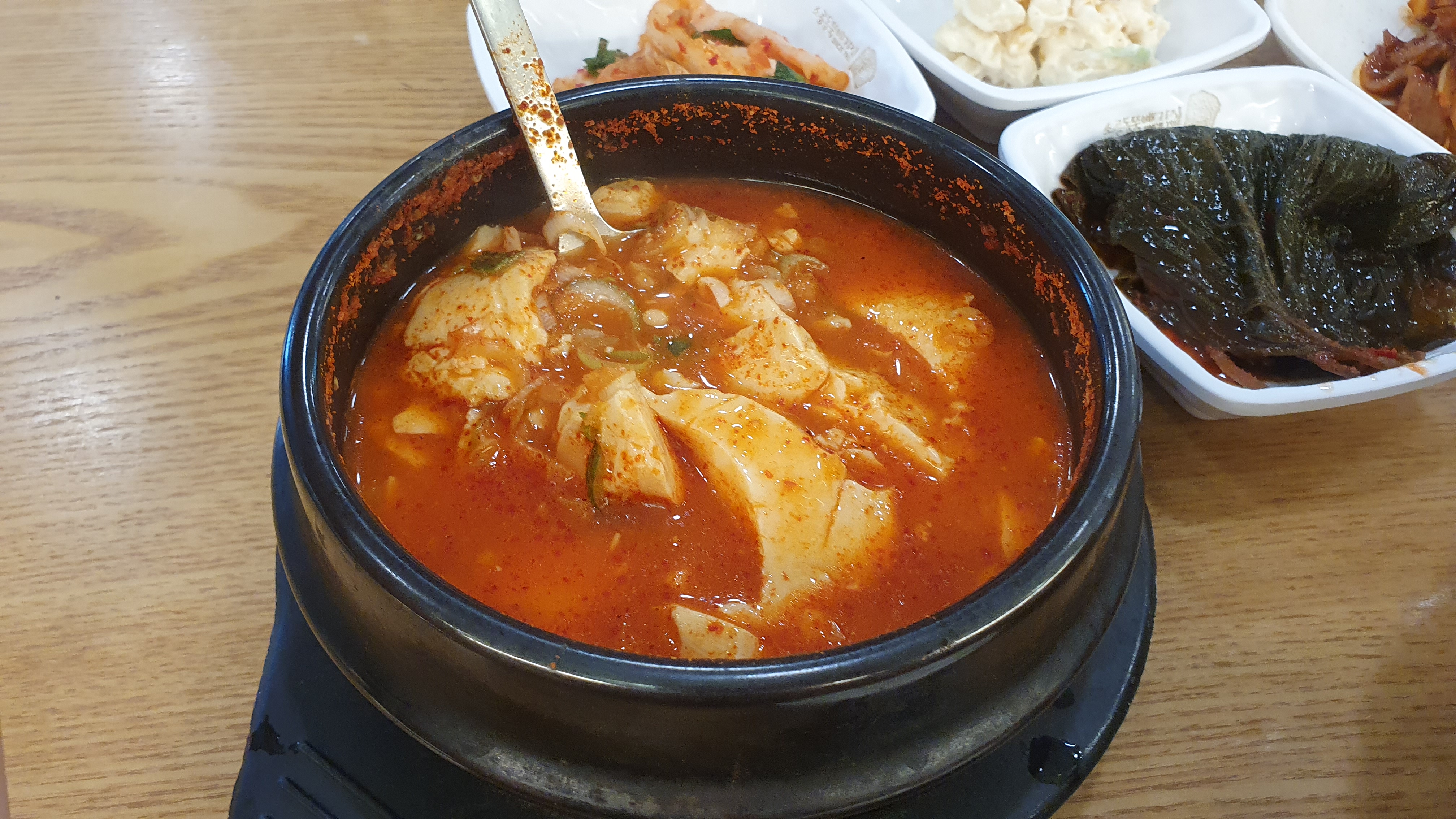 순두부뚝배기도 순두부 한가득 나와서 끝까지 순두부가 부족하지 않게 먹을 수 있었어요. 근데 둘다 빨간 메뉴이다보니. 순두부는 하얀 순두부이었어도 조화로웠을거 같습니다. 그래도 바닥까지 삭삭 긁어 먹었어요. ㅎ