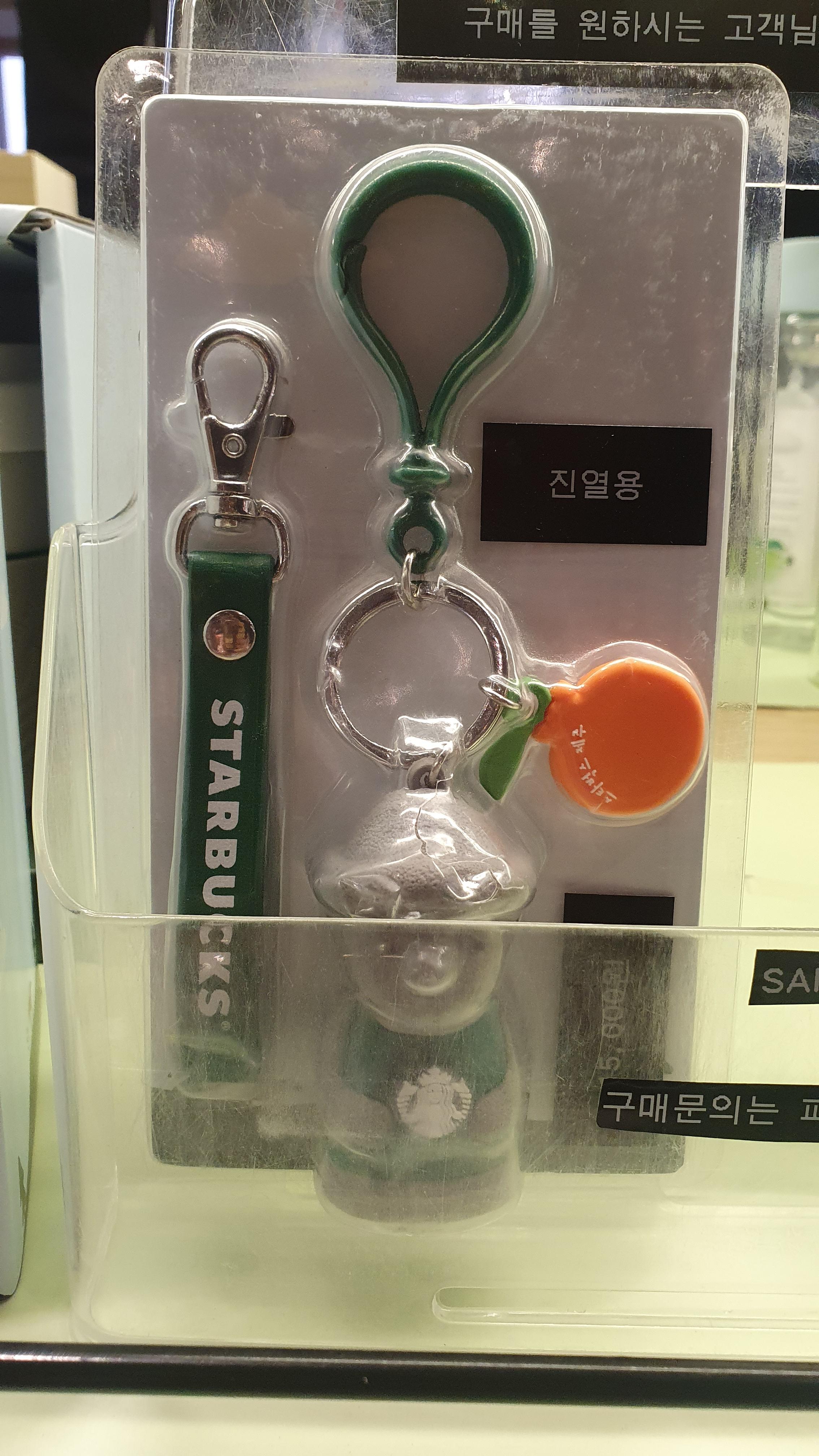 그럼 이제 스타벅스 굿즈를 구경해볼까요? 하르방 열쇠고리입니다. 스타벅스 앞치마입은 하루방이라니 장말 귀여워요. 게다 위에 보이는 거는 가죽으로된 스타벅스 홀더인데 너무 고급스러워요. 당근 캐릭터와 스타벅스 로고가 제법 잘 어울려요.