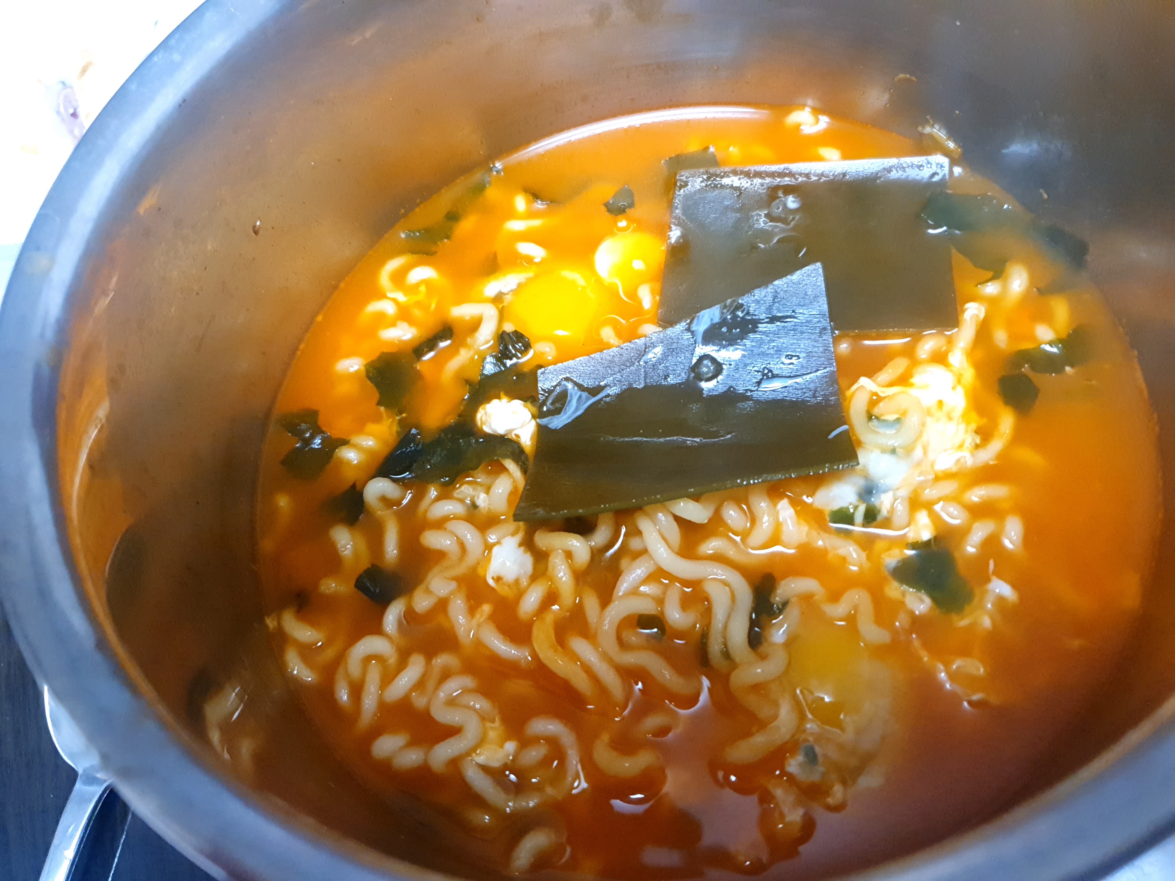 이렇게 뙇!! 다시마 2개 계란 2개를 넣고 오동통면 완성!!