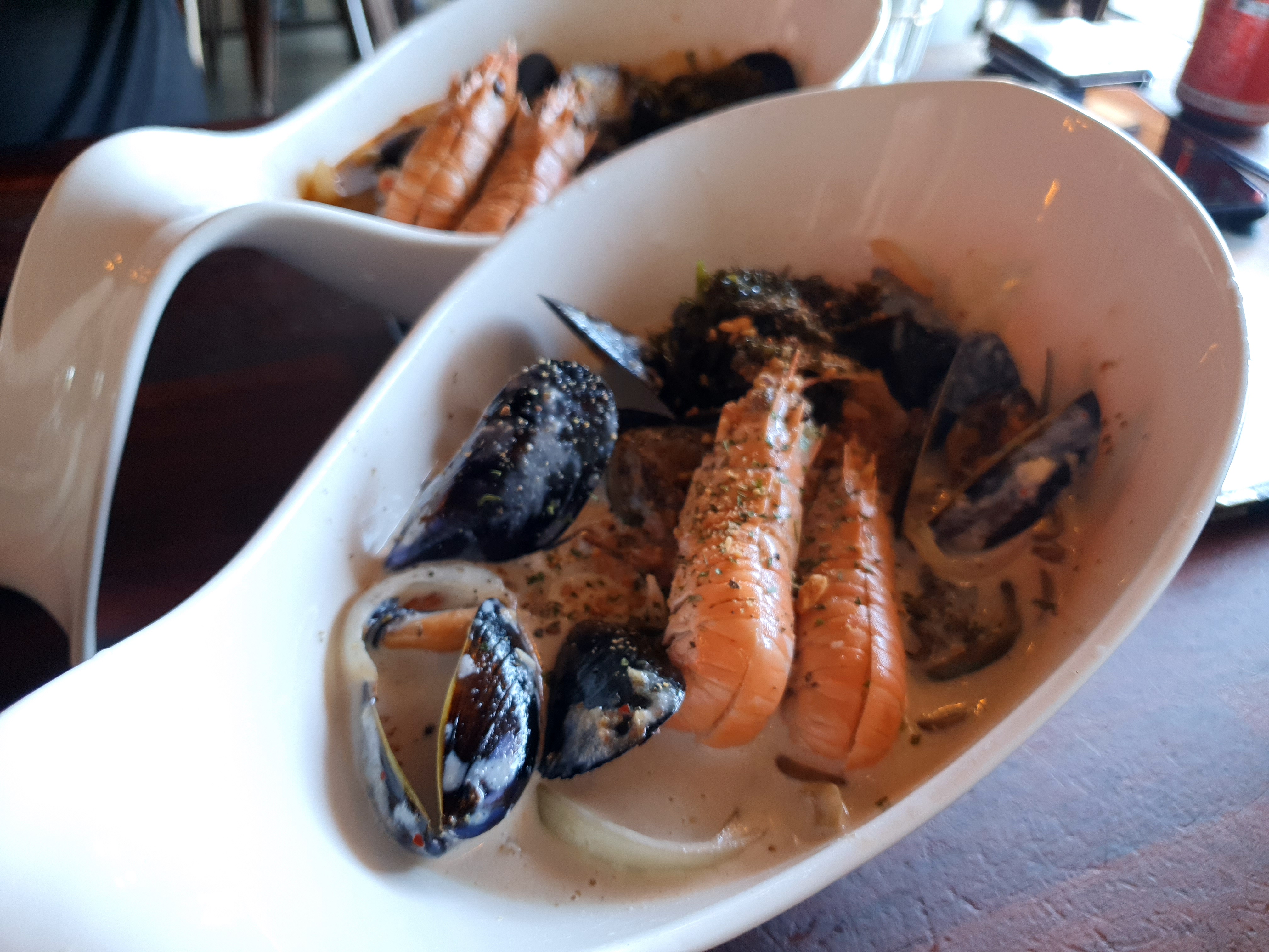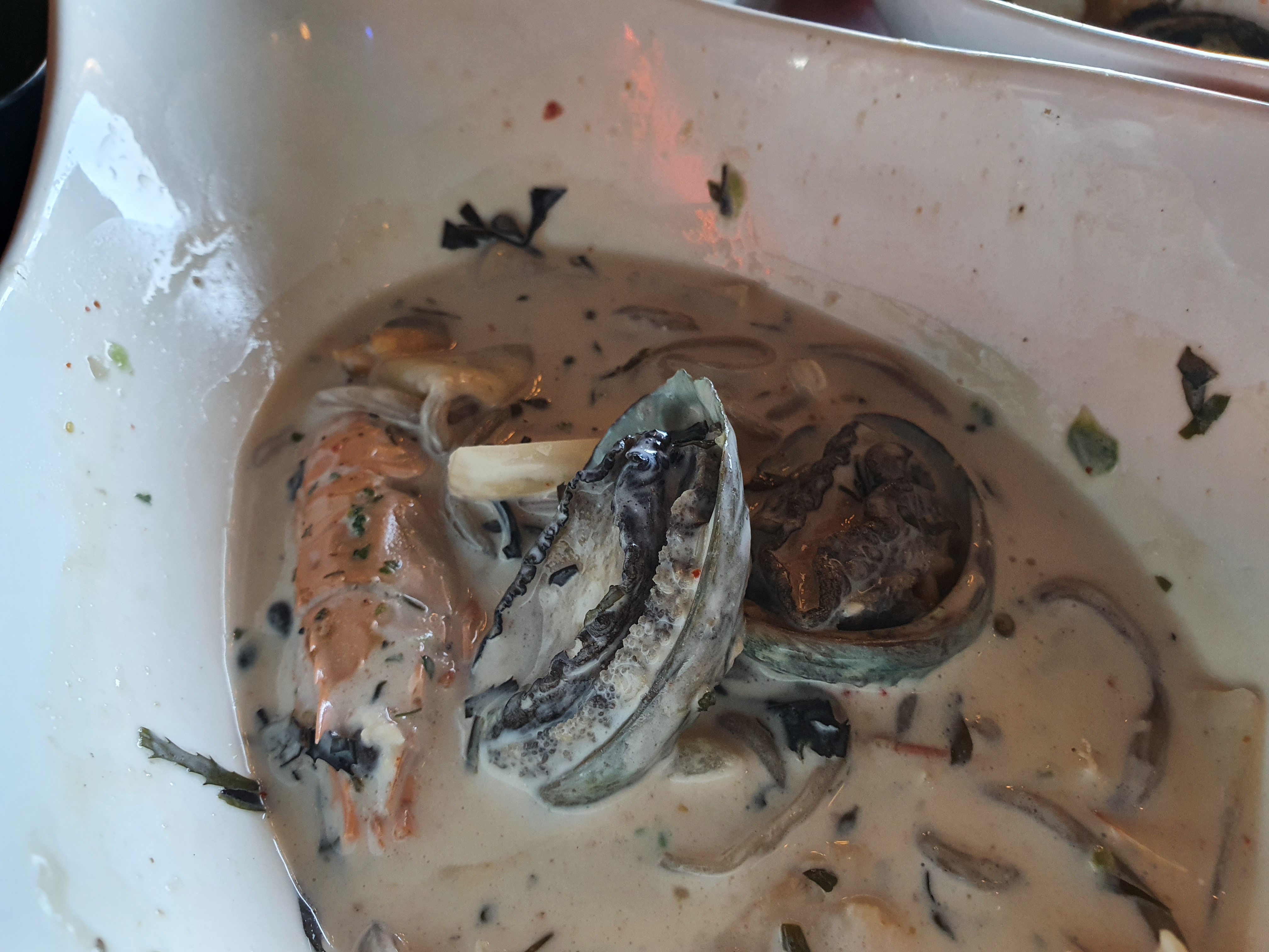 이게 백짬이예요. 토핑으로 모자반이 올라가서 사진이 이쁘게 담기지는 않는데 진짜 맛있어요. 아웃백에서 투움바 파스타를 좋아하시면 꼭 드세요. 투움바파스타에 국물 추가해서 드시면 두번 드세요!!