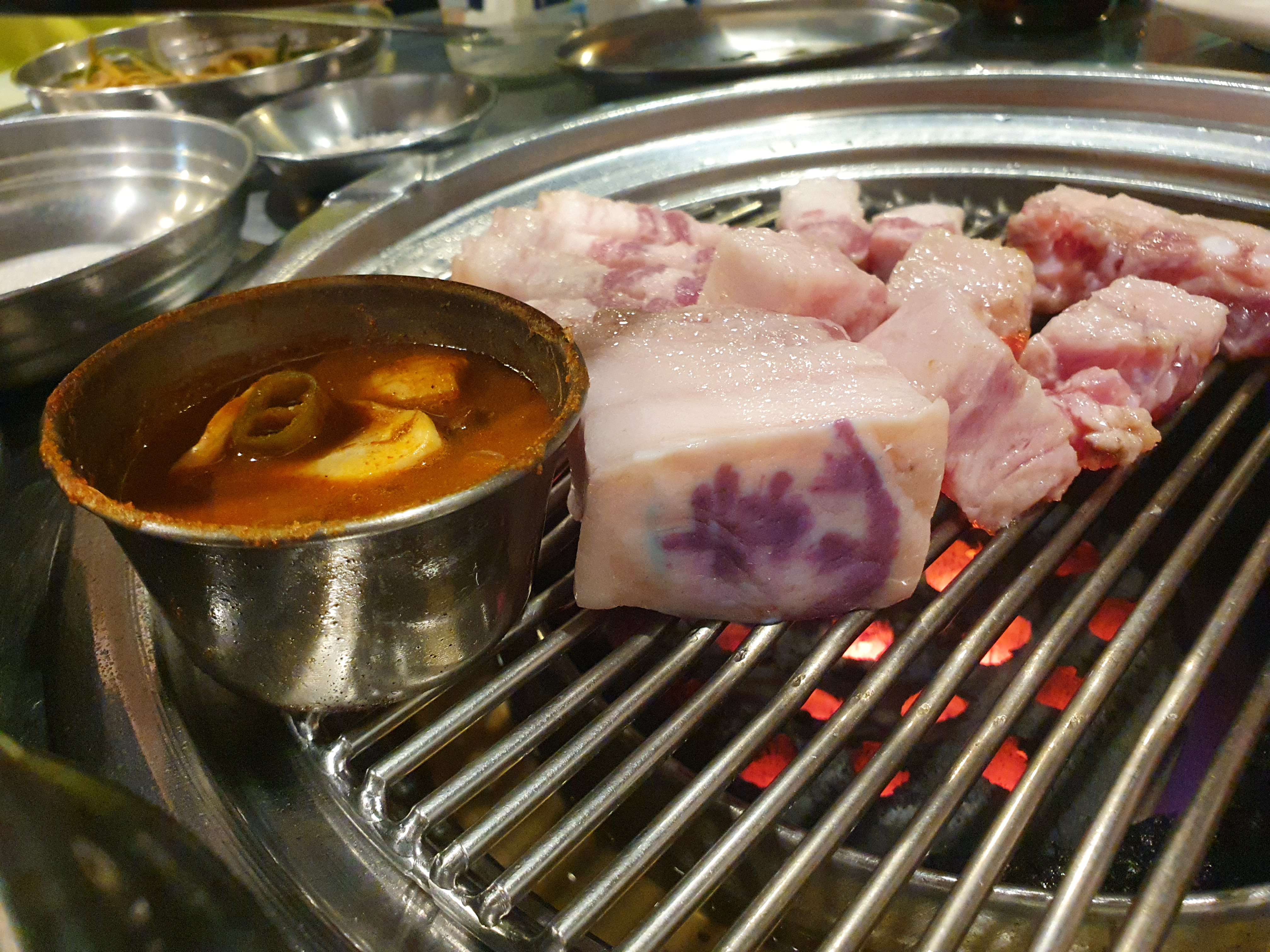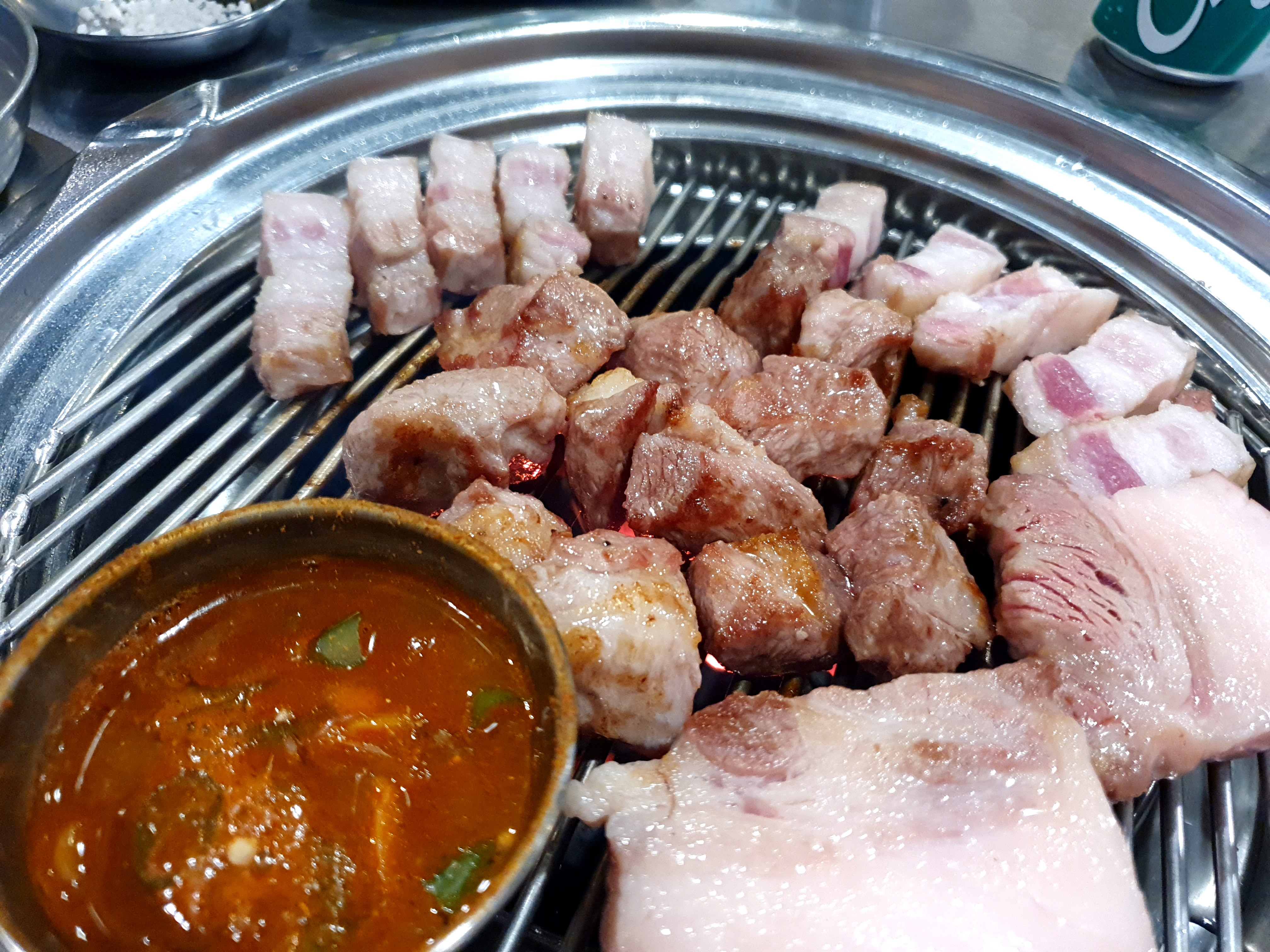 캬.. 고기 구워진 퀄리티 보이시나요. 구의 김돈이에서는 사장님께서 고기를 처음부터 끝까지 구워주세요. 저희가 해도된다고 했는데, 프로 정신이 넘치시는 친절한 사장님이셨어요. 근고기이다보니 겉바속촉! 제가 딱 좋아하는 스타일로 구워주셨어요. 고기가 맛있게 구워지면 앞접시에 딱딱 놔주는 데, 사장님이 눈치가 빠르셔서 머근 속도가 느리거같으면 천천히 구워주시고, 조금 식은 고기는 다시 데펴 주시고 하시더라구요. 다시 데펴 주시는 경우는 첨봐서 감동이었어요. ㅎ