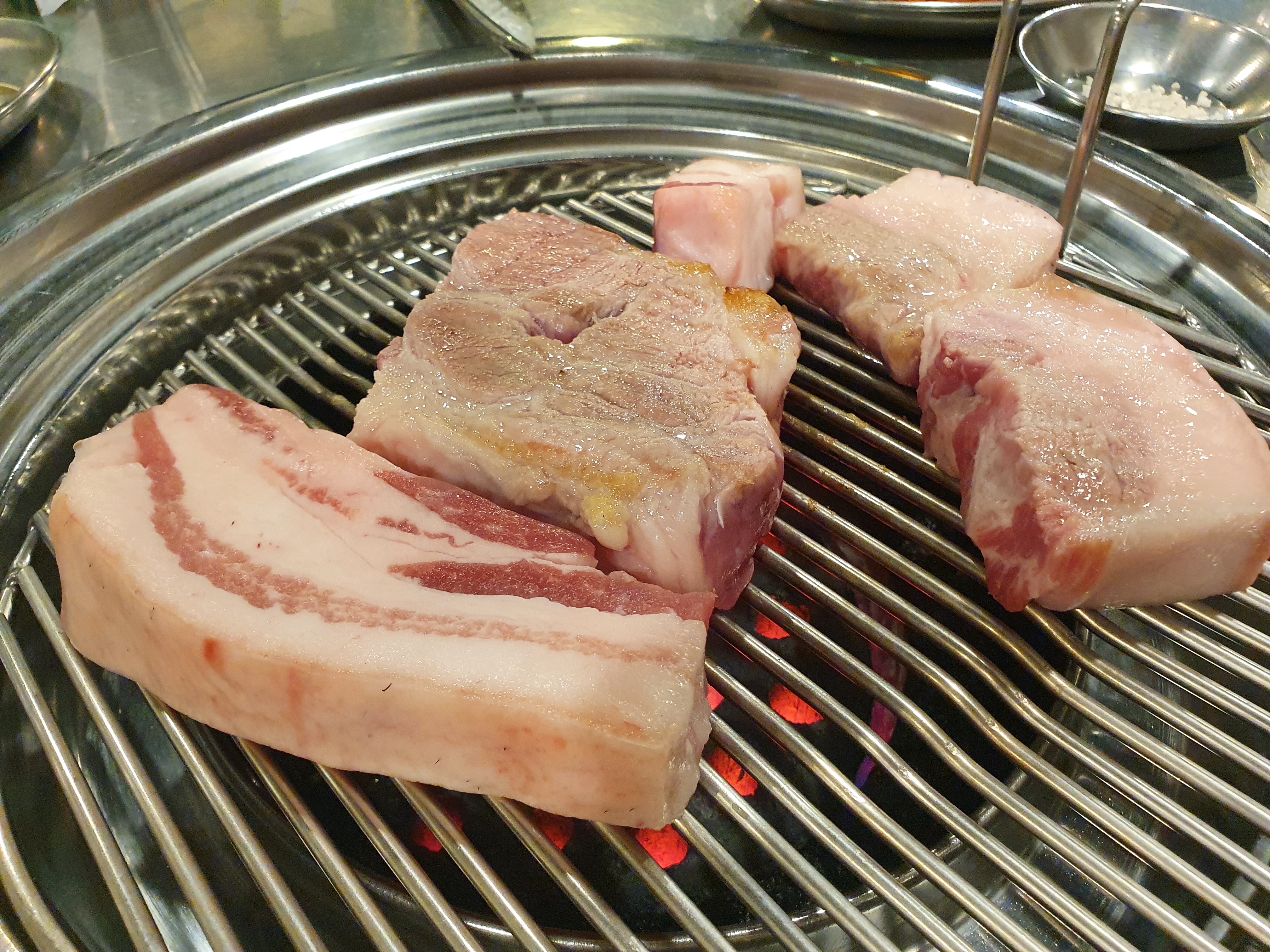 캬.. 고기 구워진 퀄리티 보이시나요. 구의 김돈이에서는 사장님께서 고기를 처음부터 끝까지 구워주세요. 저희가 해도된다고 했는데, 프로 정신이 넘치시는 친절한 사장님이셨어요. 근고기이다보니 겉바속촉! 제가 딱 좋아하는 스타일로 구워주셨어요. 고기가 맛있게 구워지면 앞접시에 딱딱 놔주는 데, 사장님이 눈치가 빠르셔서 머근 속도가 느리거같으면 천천히 구워주시고, 조금 식은 고기는 다시 데펴 주시고 하시더라구요. 다시 데펴 주시는 경우는 첨봐서 감동이었어요. ㅎ