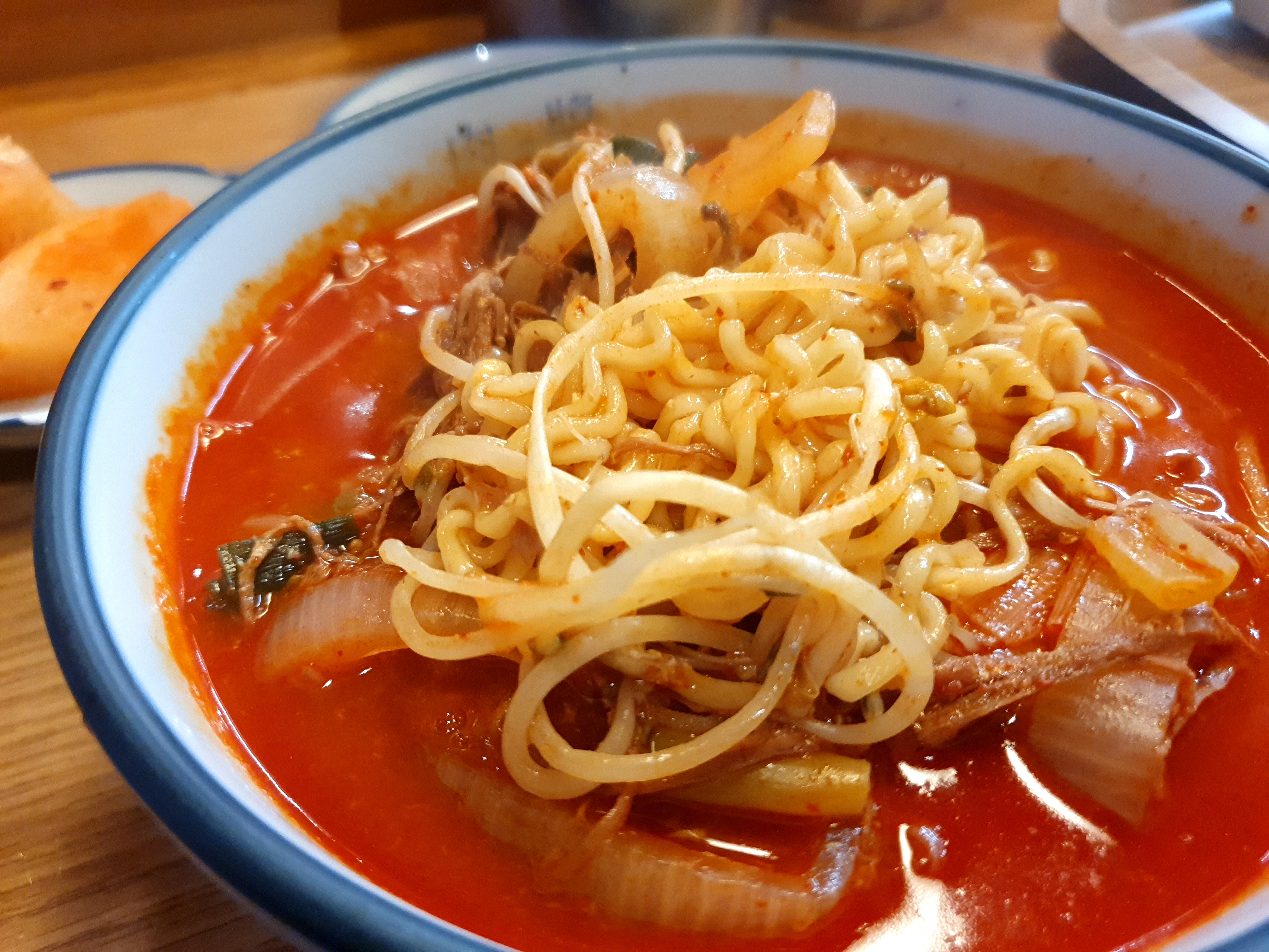 육라면의 면이 보이도록 찍어보았어요. 저는 육갈탕보다는 육라면이 더 맛있었어요. 육개장에 들어있는 양지와 사태고기가 라면사이와 매우 잘 어우러졌습니다. 육갈탕에 들어있는 갈비도 손질이 매우 잘되어있었지만 후루루룩 넘어가는 맛을 들 한거같아요. 숙주와 고기와 라면이 후루루룩 넘어가는 데 정말 맛있었습니다. 게다 가격이 8천원!! 가성비 넘치는 맛있는 맛이예요.