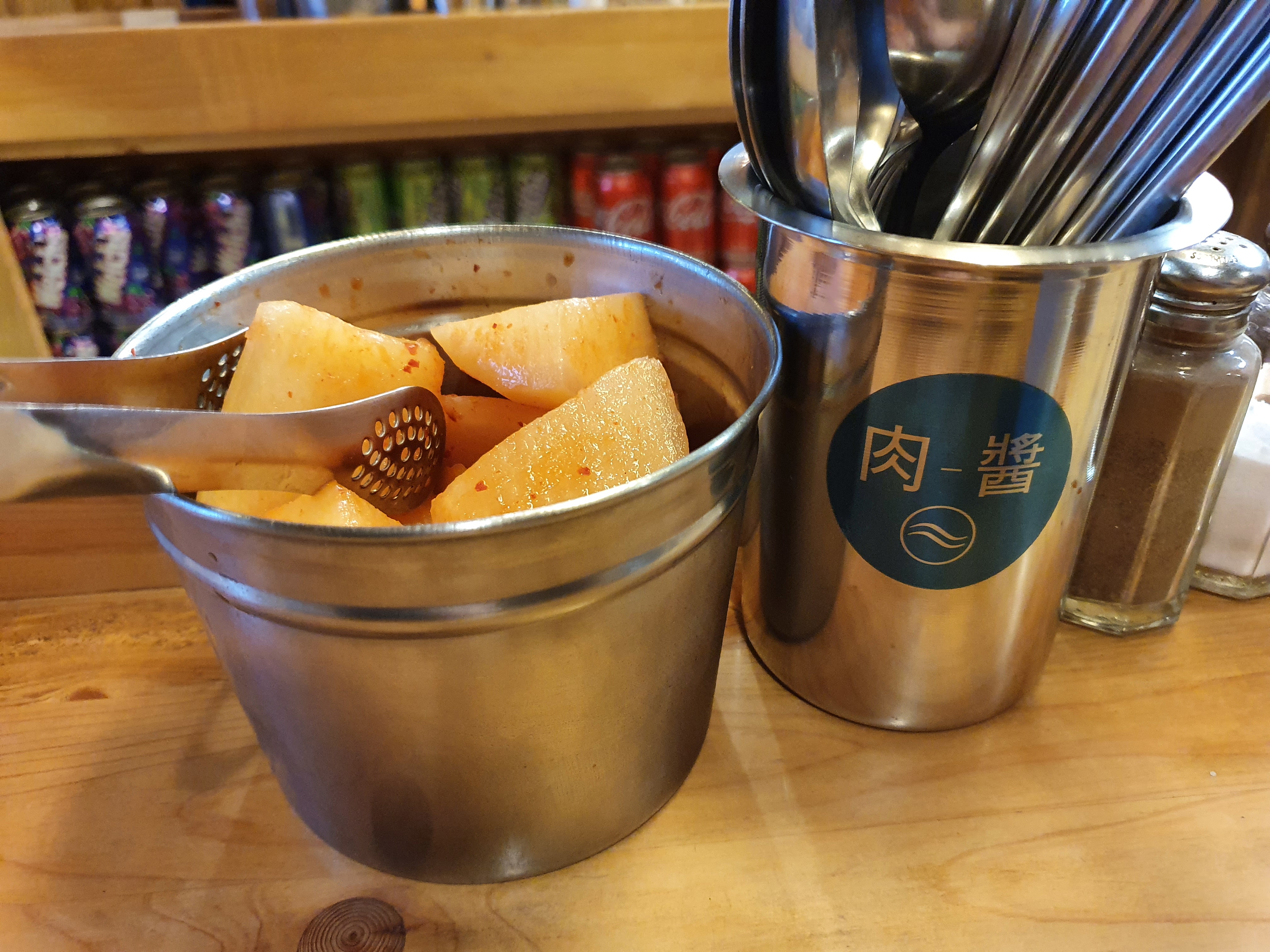 게다 함께하는 이 석박지 깍두기. 이게 아주 요물입니다. 간이 딱 적절하고 식감이 정말 좋아요. 제가 깍두기 진짜 좋아하는데 여러번 리필해달라고 얘기할 필요도 없이 눈앞에 이미 많이 주니 신나서 먹었어요.