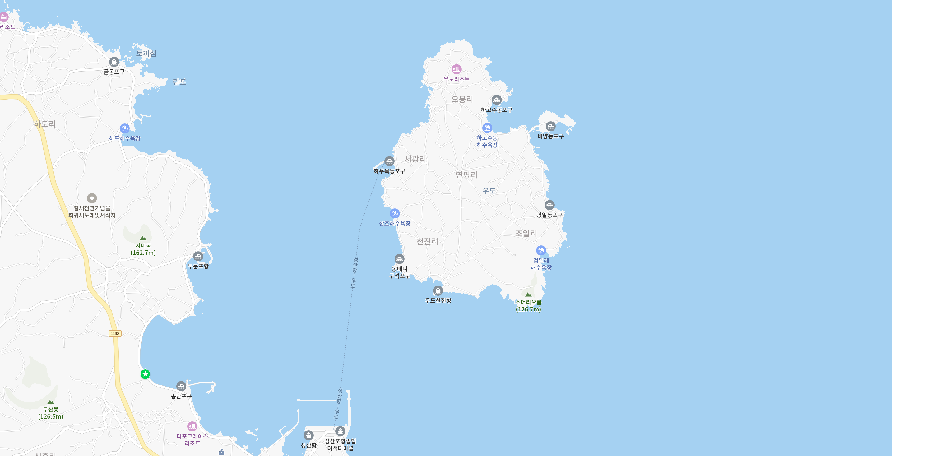 우도에는 검멀레해변 근처에서도 보트를 탈 수 있는데, 그쪽에서 보트를 타면 고양이 선장님이 계신곳의 1/3만 태워준다고 하더라구요. 아래 지도를 보면 보트로 운영하는 거리가 나와있는데 진짜 3배는 되는 거 같네요.