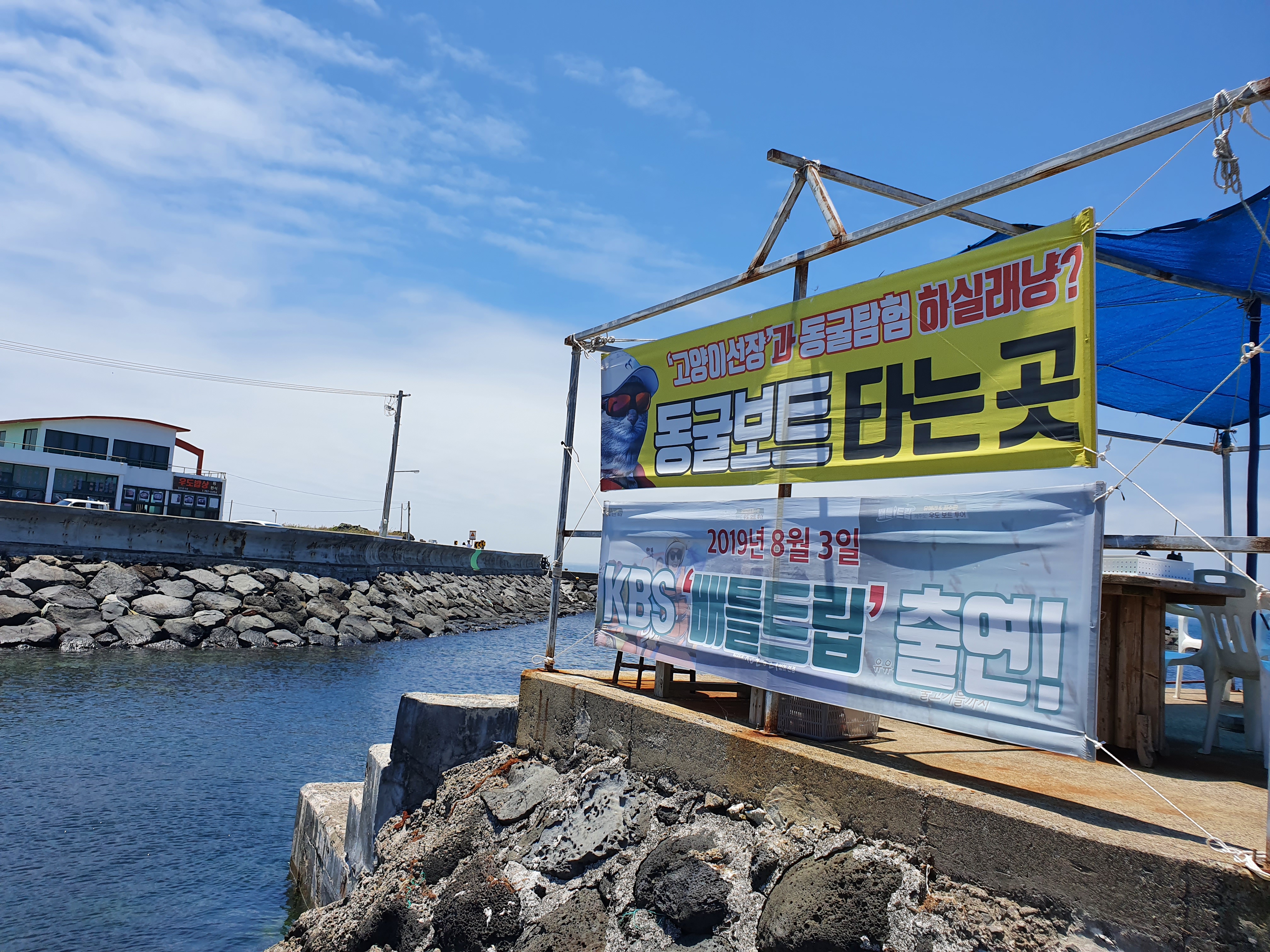 멀리서봐도 잘 보일 수 있도록 '동굴보트타는곳' 이라고 적혀있어요.