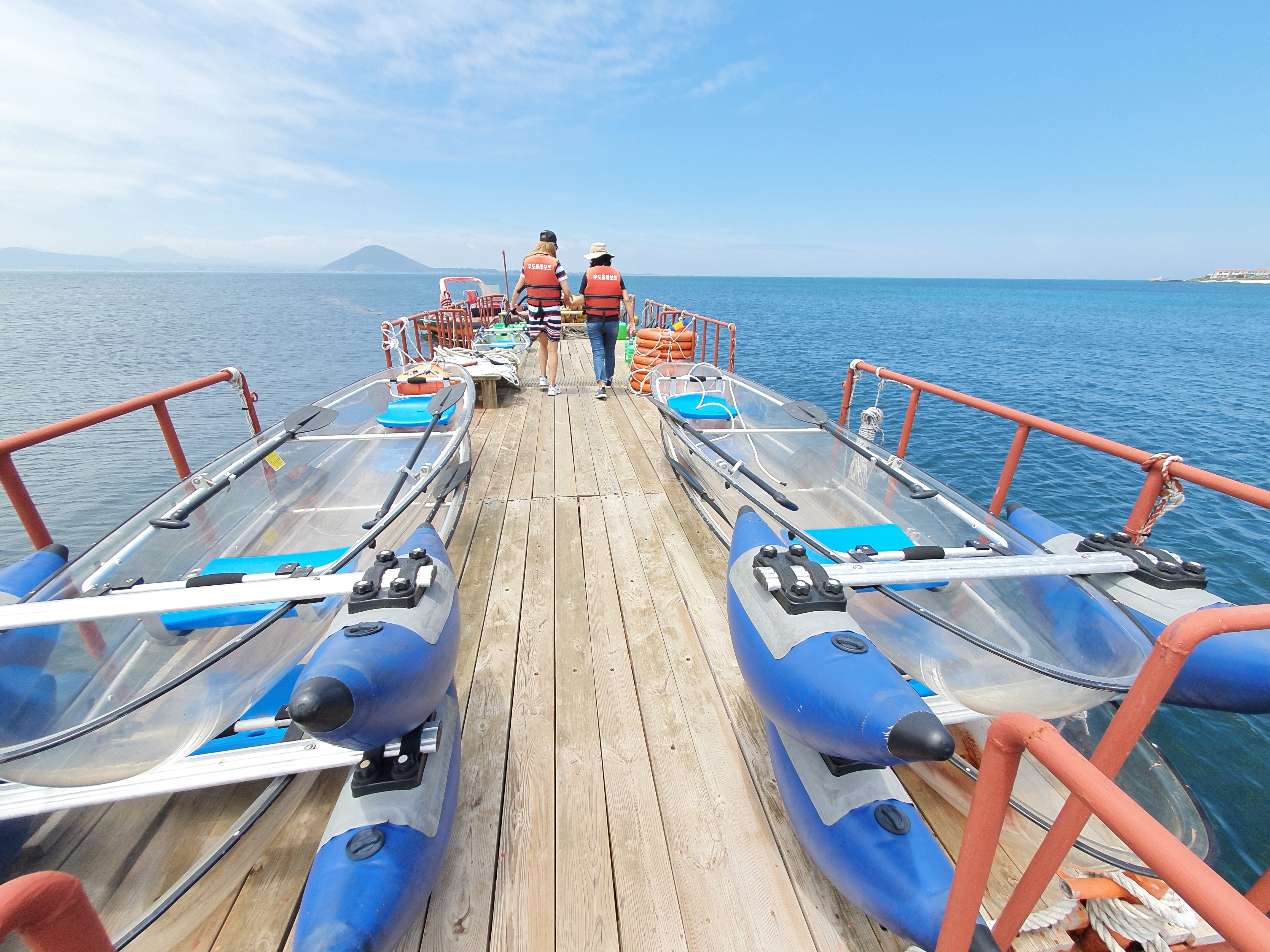 중간에 투명 카약도 보이더라구요. 파도가 없는 날은 카약타고 넋놓고 바다 구경하면 참 좋겠다는 생각이 들었어요.