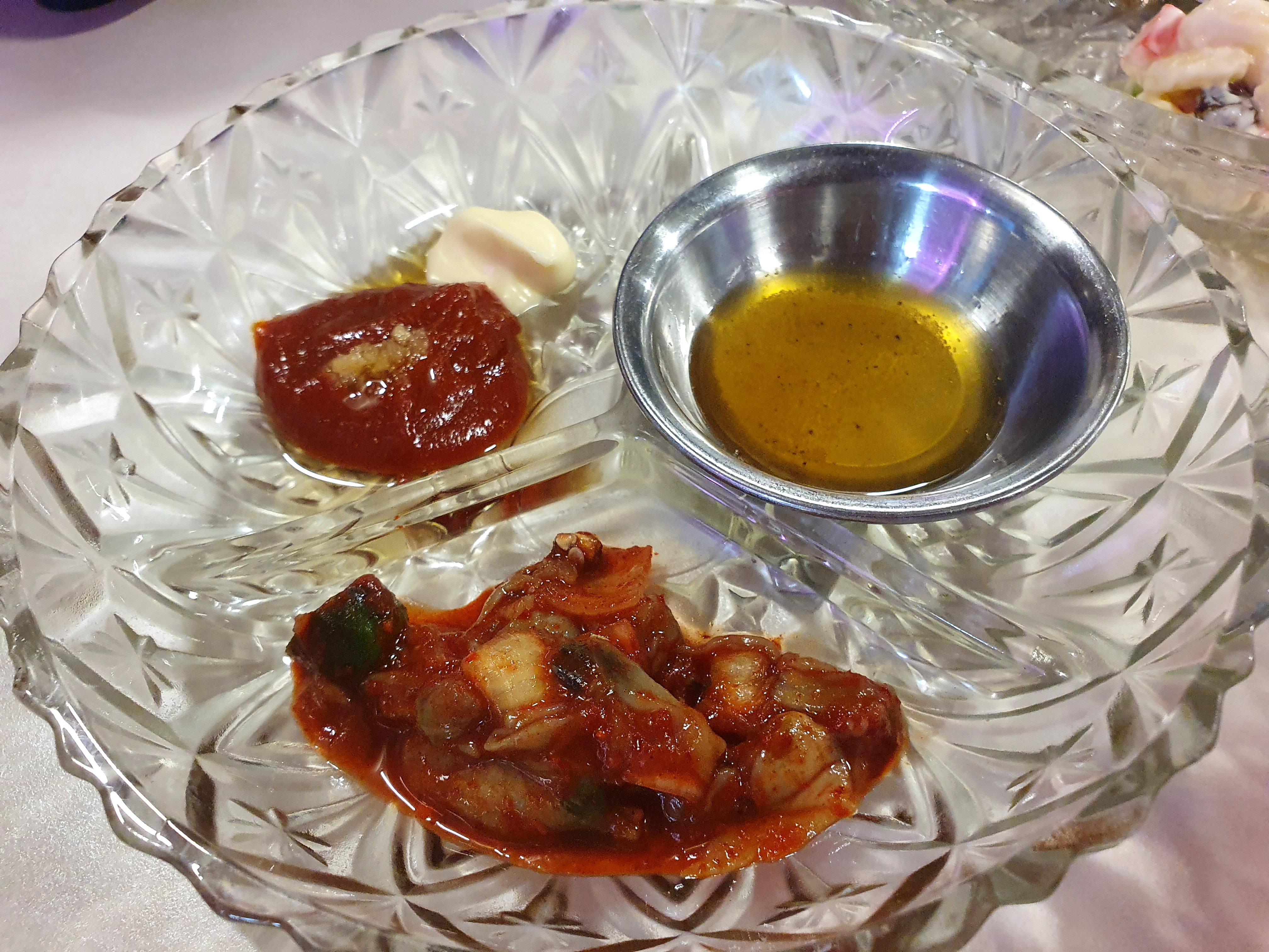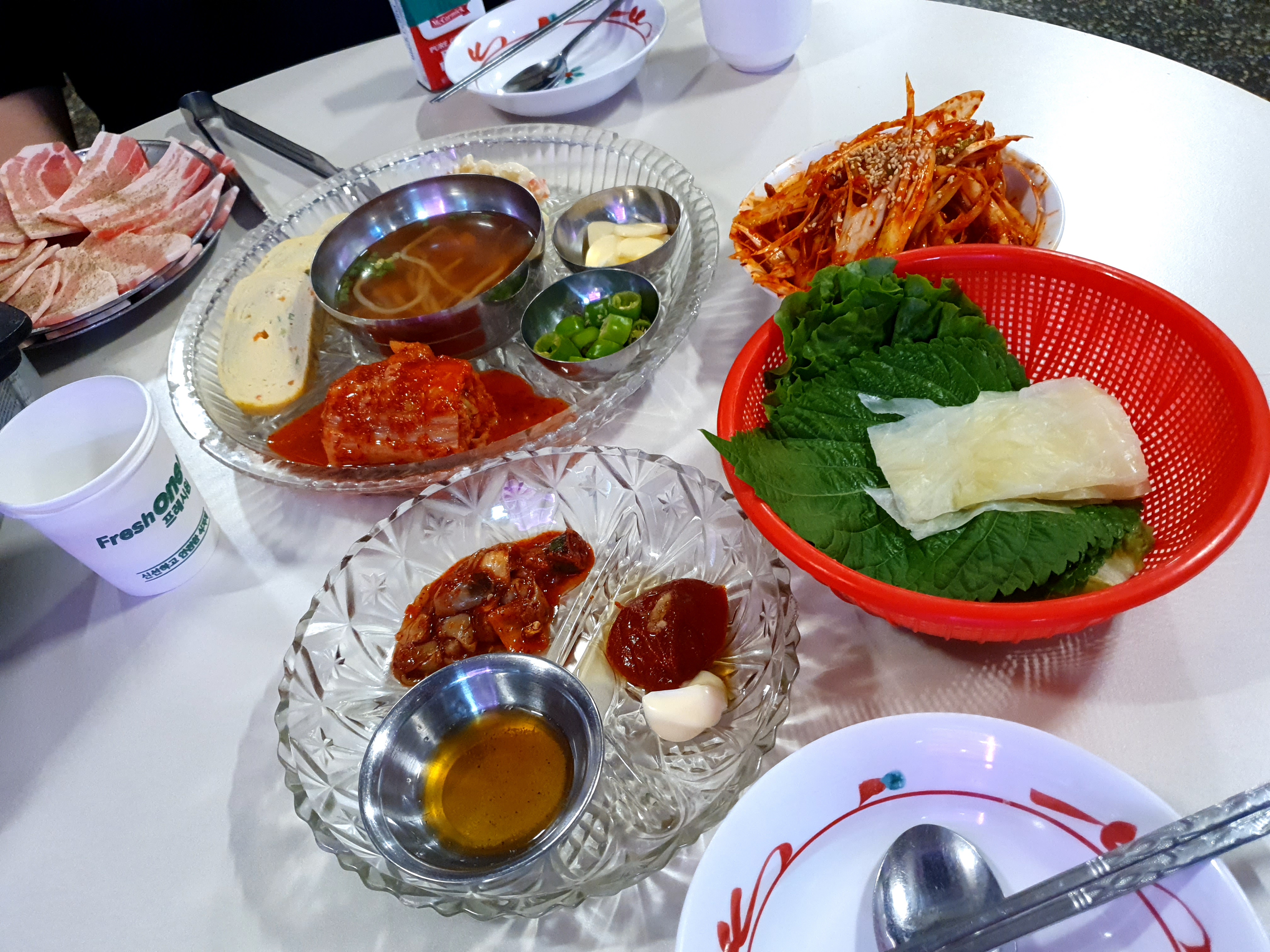 이렇게 이쁘게 반찬이 셋팅되지만 저는 사실 파채말고 다른 반찬은 잘 안먹었는데 고긱가 익기전에 너무 배가 고파서 계란말이를 조개젓과 함께 먹었는데 꿀맛이었어여. 고기 구워지기전에 계란말이와 조개젓을 꼭 같이 드셔보세요.