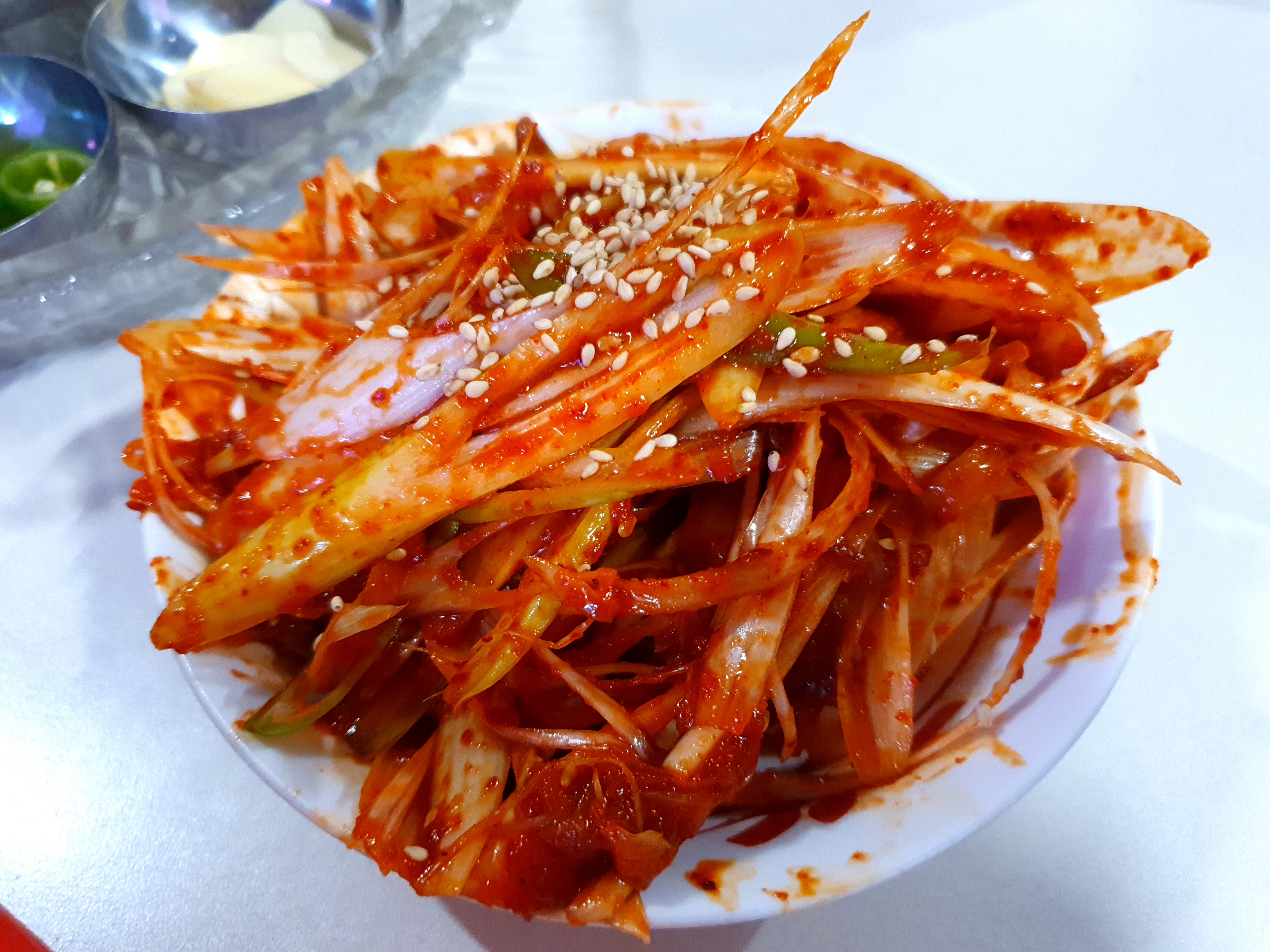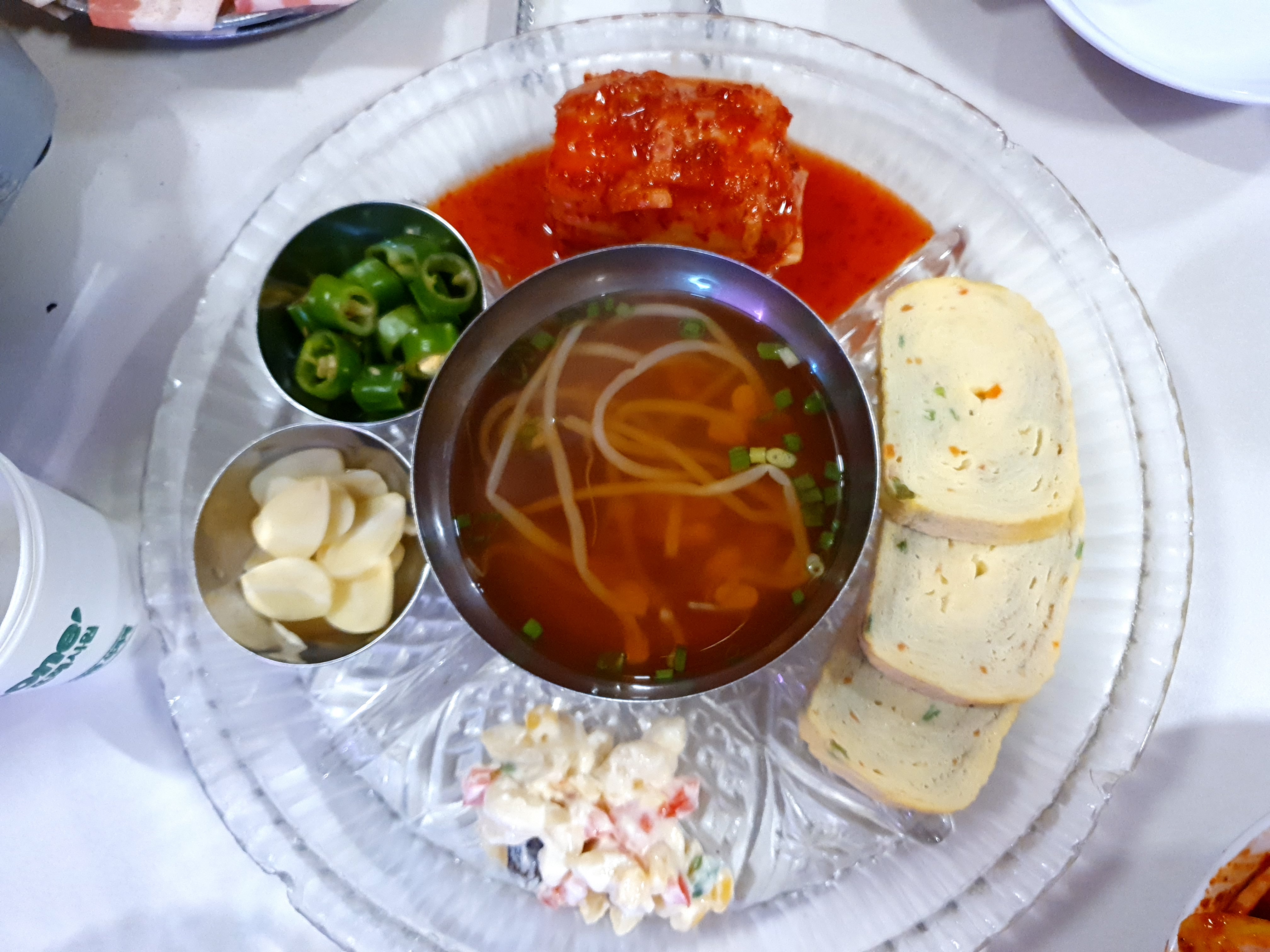 이렇게 이쁘게 반찬이 셋팅되지만 저는 사실 파채말고 다른 반찬은 잘 안먹었는데 고긱가 익기전에 너무 배가 고파서 계란말이를 조개젓과 함께 먹었는데 꿀맛이었어여. 고기 구워지기전에 계란말이와 조개젓을 꼭 같이 드셔보세요.