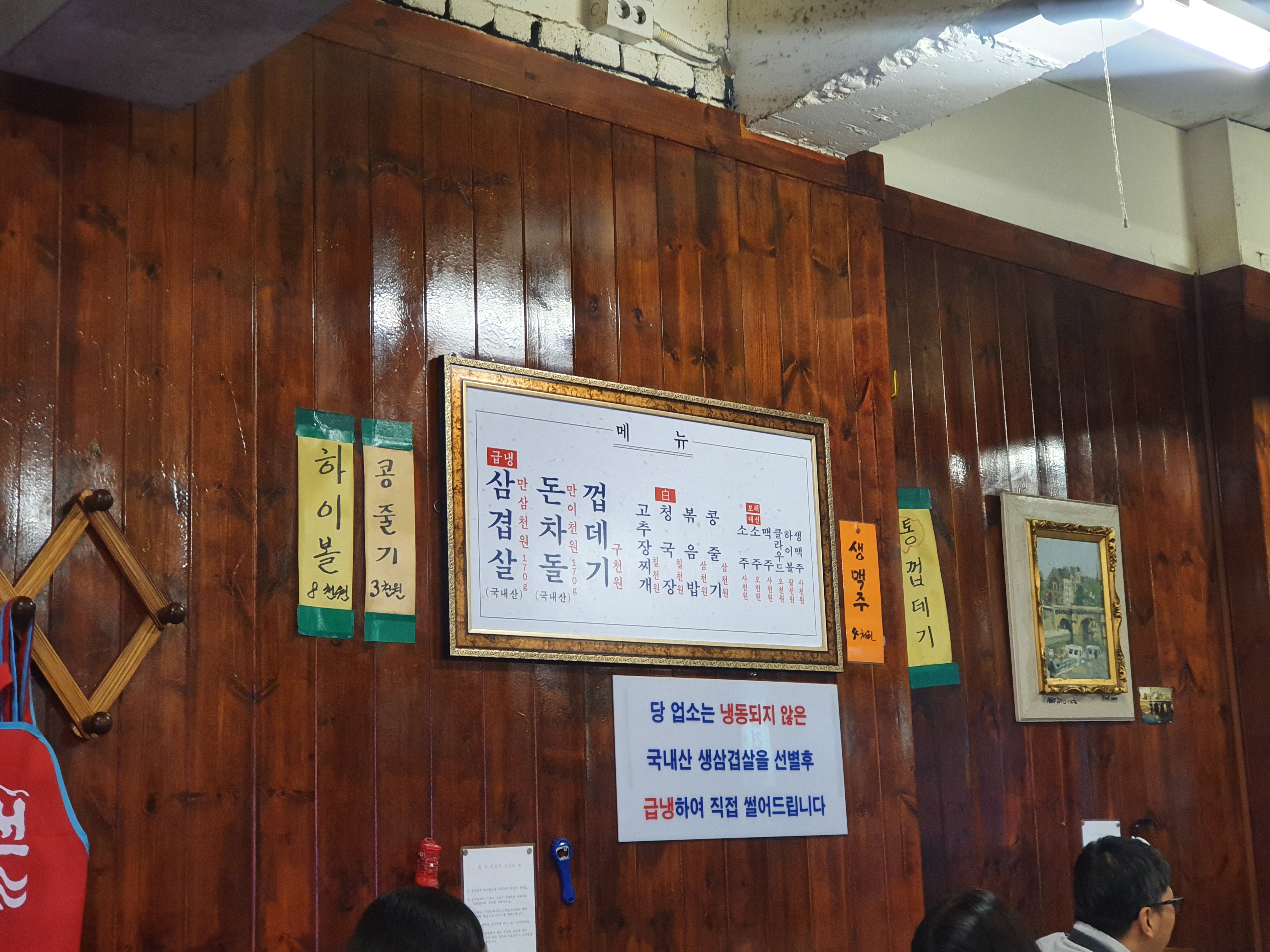 행진 냉삼의 메뉴판입니다. 사실 머 메뉴판 볼 필요도 없이 냉삼과 고추장찌개를 시키지만 혹시나 변경된 것이 있나 싶어서 메뉴판도 담아봅니다.