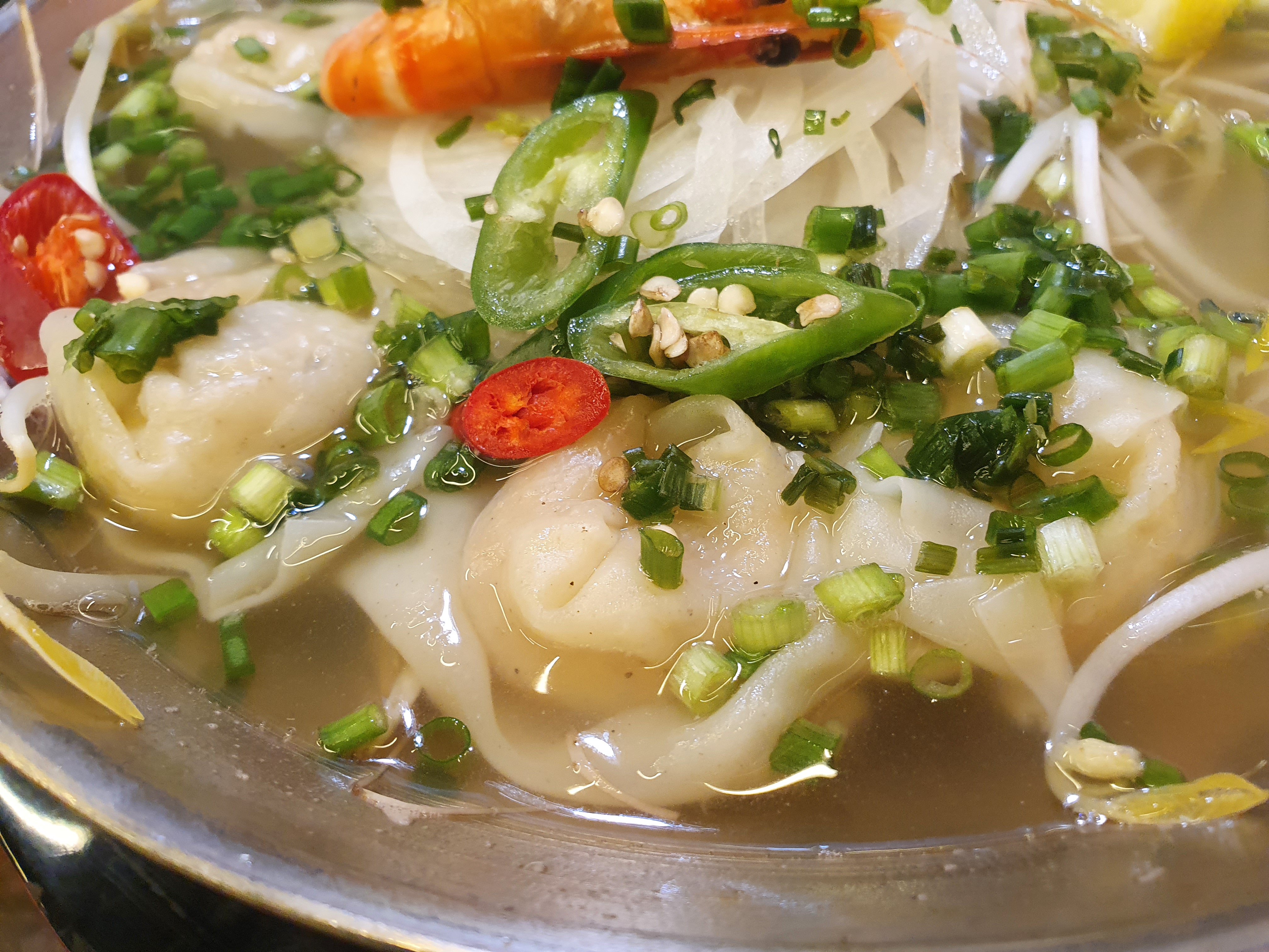 이거는 새우 완탕면이예요. 가격은 10,500원입니다. 결코 저렴한 가격은 아니었지만 완탕면 안에 새우만두가 4개정도 들어있는데 통새우가 들어있어요. 식감이 정말 좋아요. 국물느낌은 맛있는 쌀국수인데 맛있는 만두가 들어가니 궁합니 딱 좋았어요.