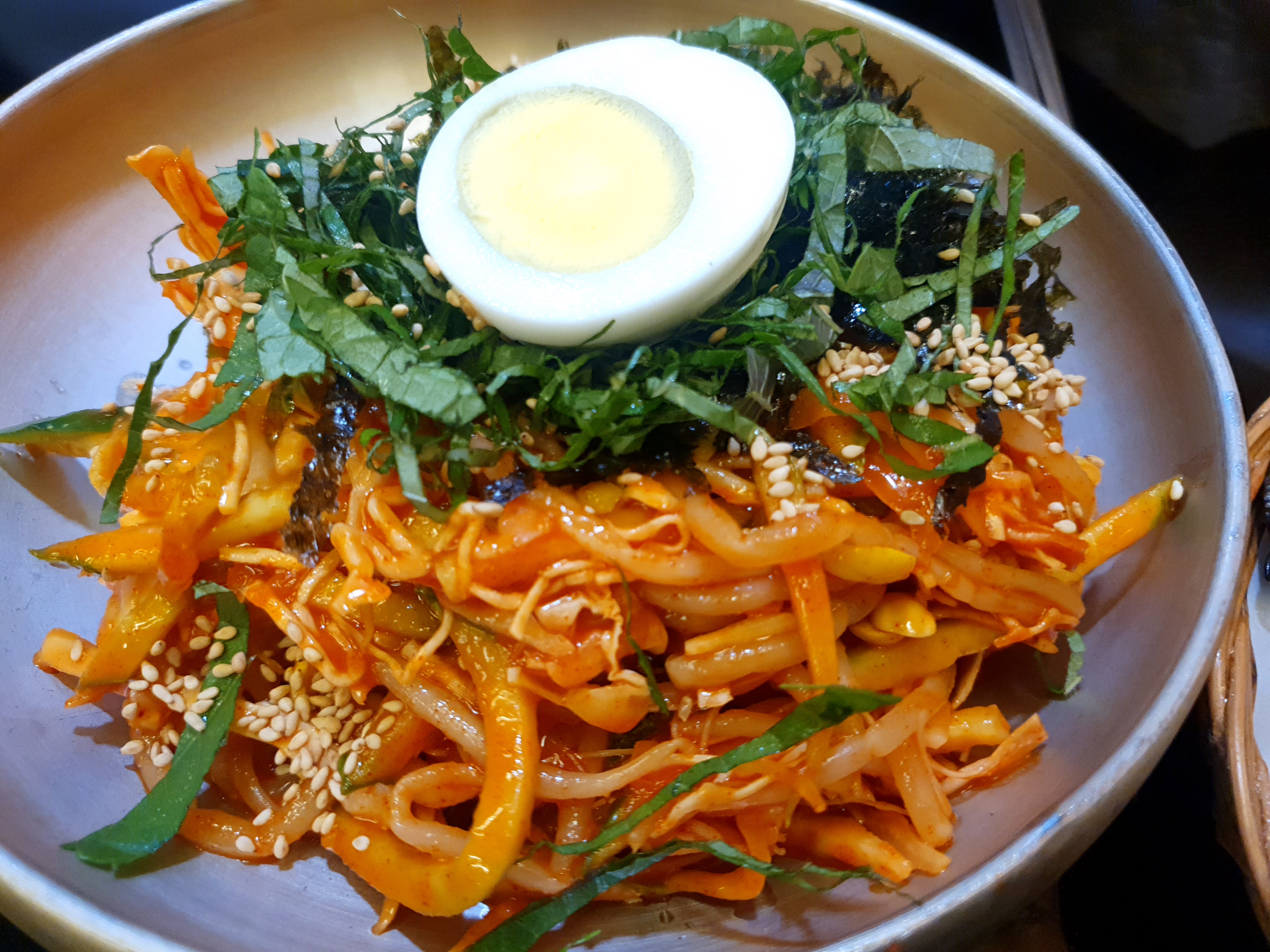 마지막으로 느끼함을 잡아줄 쫄면 입니다. 쫄면은 8천원입니다. 면이 아주 토실토실해요. 양념도 아주 잘 섞여있어요. 제가 쫄면을 마니 좋아하는 편은 아닌데 깻잎하고 함께 먹으니 정말 맛있었어요.