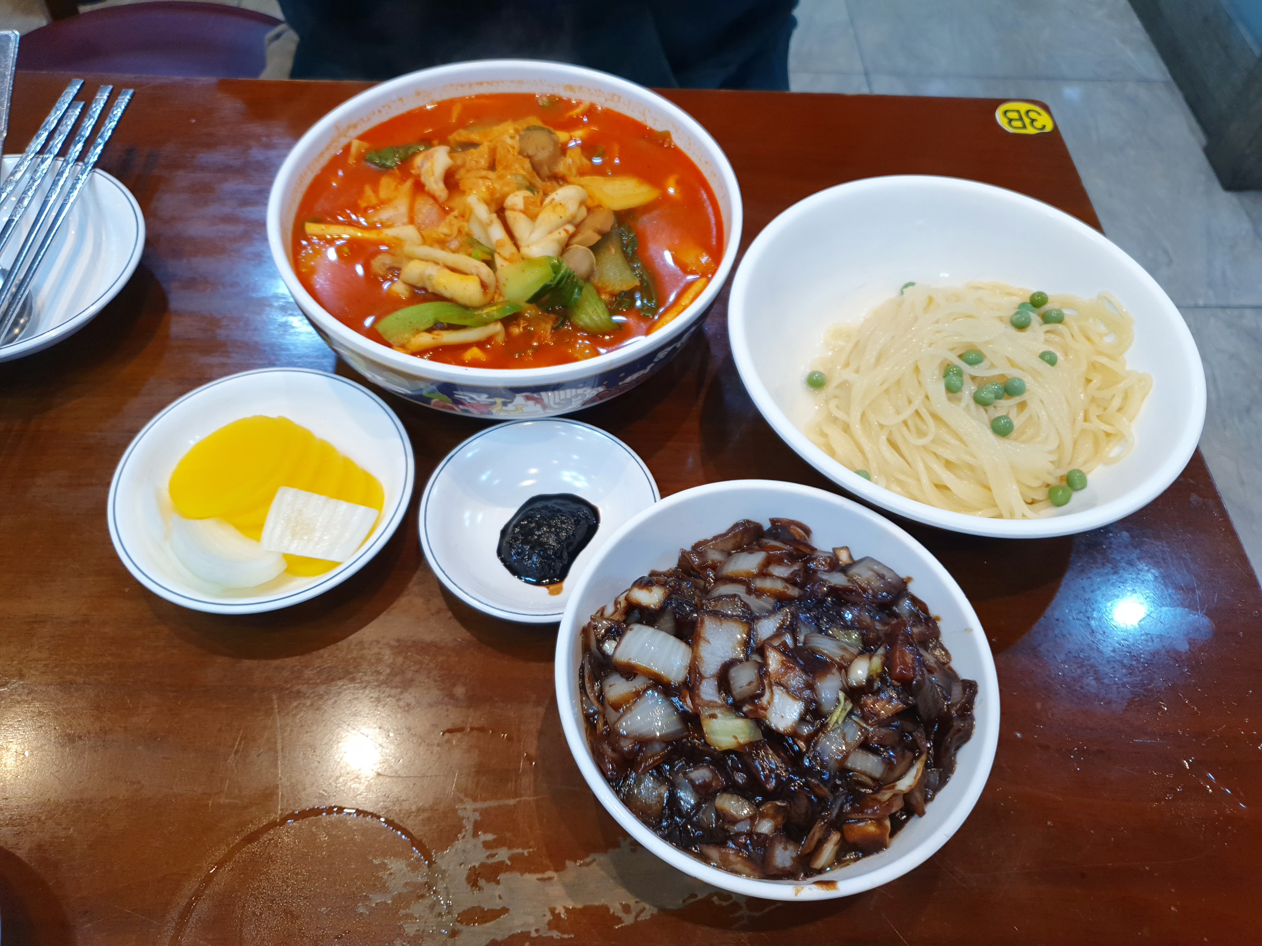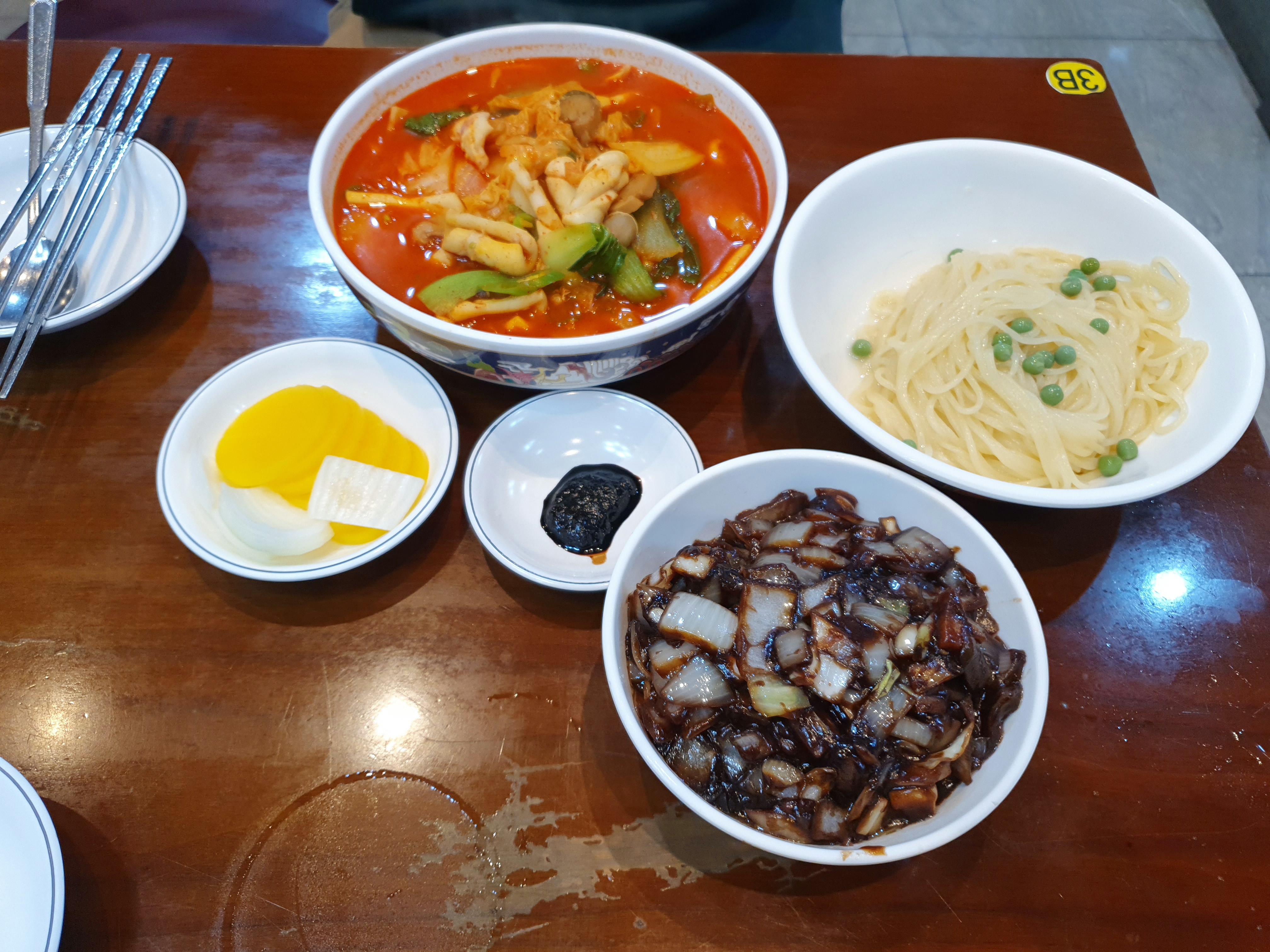 저희는 고추짬뽕이 맛있다고 해서 고추 짬뽕을 시키고 제가 요즘 노래를 불렀던 간짜장도 시켰습니다 이걸로는 조금 서운할 것 같아 군만두도 시켰습니다