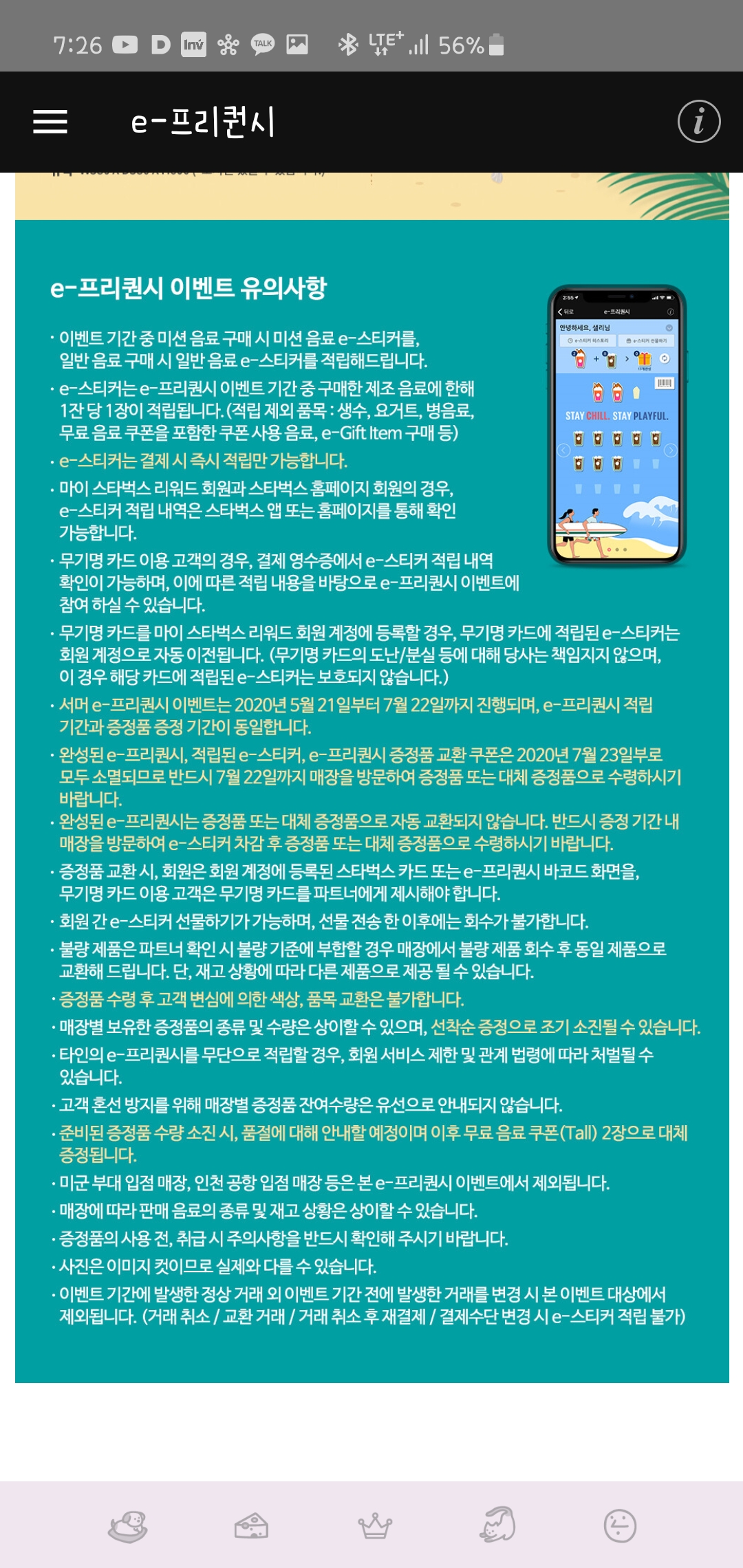 스타벅스 써머레디백 프리퀀시 이벤트 안내문을 보면 하단에 적혀있어요. 준비된 증정상품 소진시 tall사이즈 음료 두잔으로 교환이 가능합니다. 만일 레디백과 써머체어가 모두 소진이 되면 겨우 음료 두잔만 받을 수 있습니다. 혹시 급 레디백이 모두 소진되면 써머체어도 재고가 금방 빠질수 있을거같아요. 모두들 현명한 선택 하시기를 바랍니다.