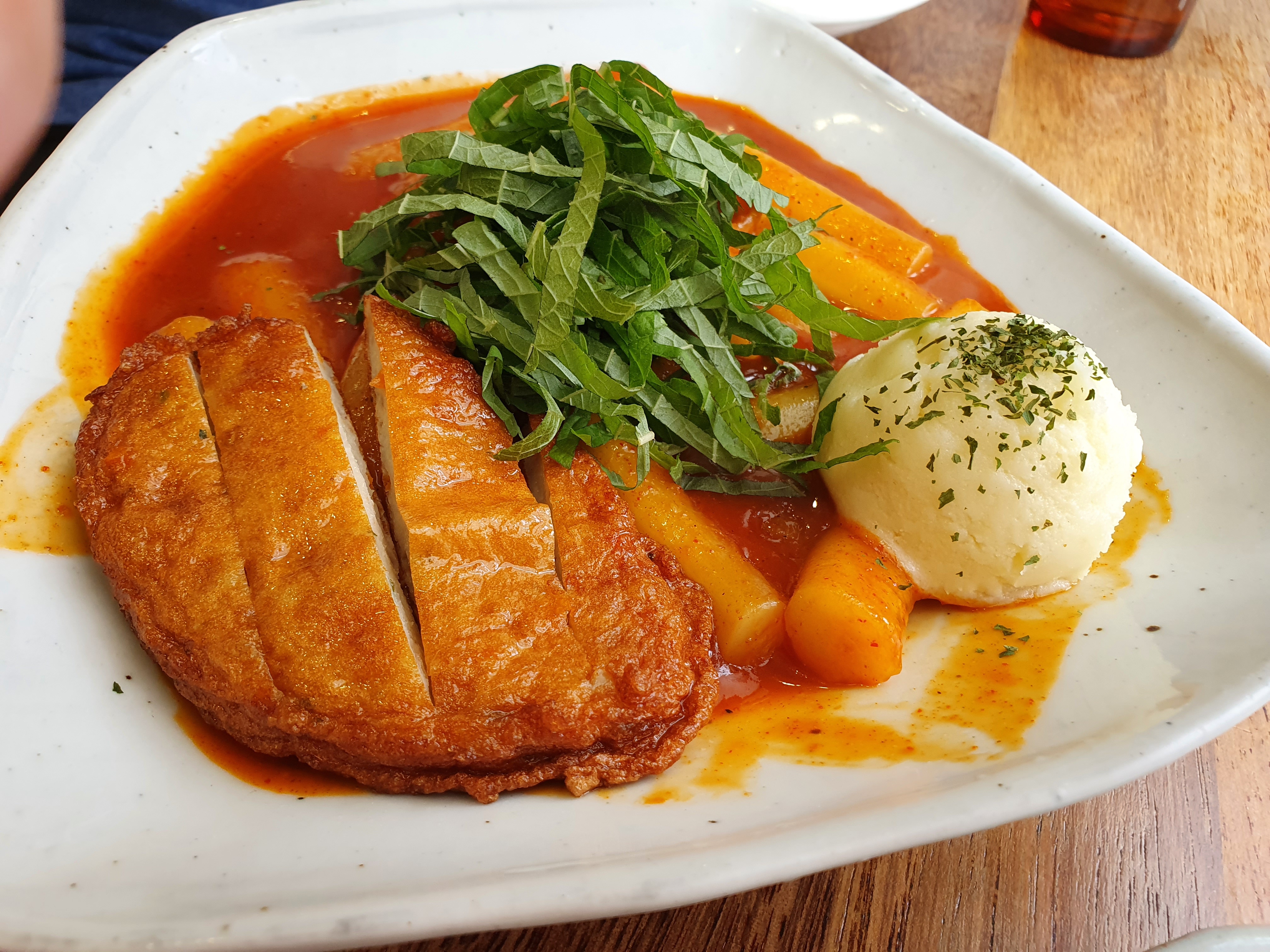 제일 기본이 되는 메뉴는 메쉬드 치즈 포테이토와 어묵튀김이 올라간 강서떡볶이입니다. 새콤달콤 와사비 샐러드도 너무 탐나고. 홍콩식 카야 토스트도 너무 맛있겠네요. 와 주먹밥도 튀겨서 판대요..