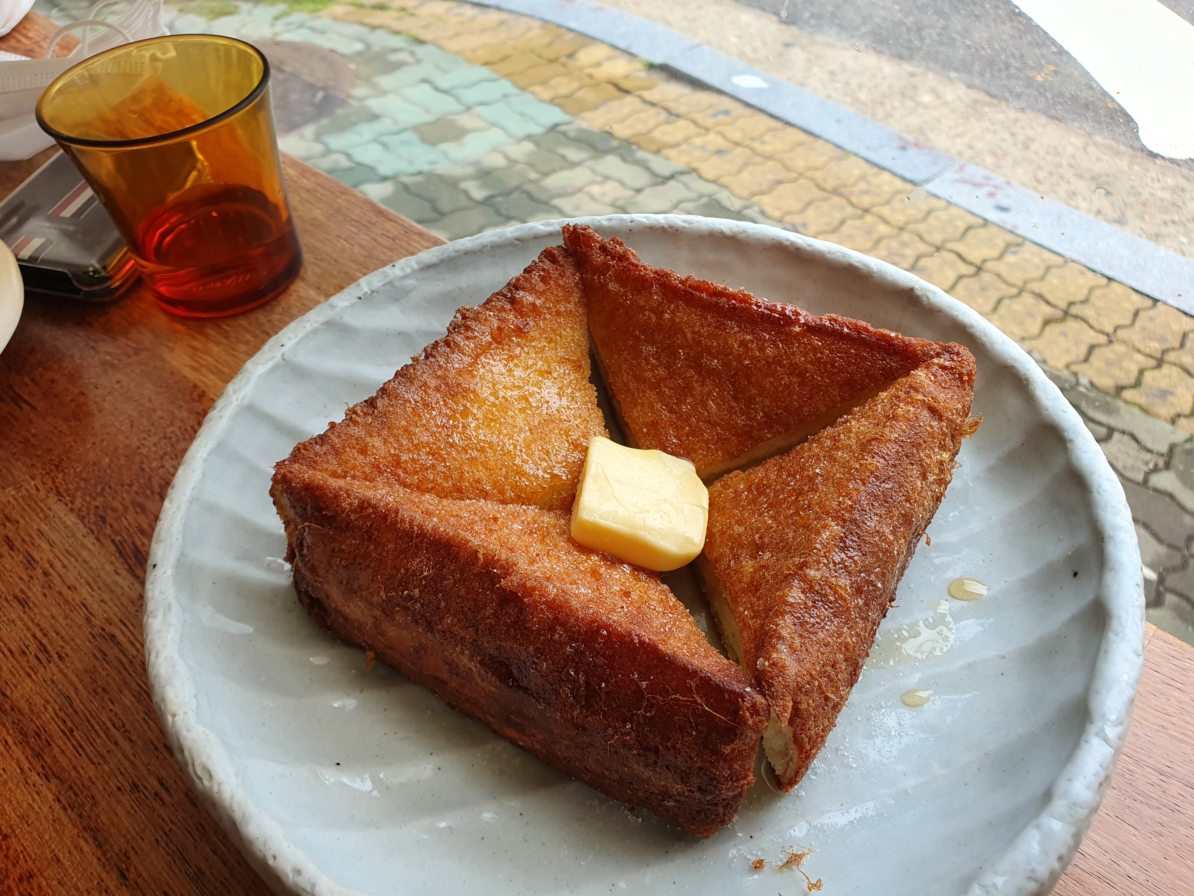 먹다보니 비쥬얼 예술인 카여토스트가 나왔어요. 빵 전체를 튀겨나온느낌인데요. 와.. 겉바속촉입니다. 오랜만에 맛있는 카여토스트를 먹어서 정말 좋았어요. 이곳은 떡볶이가 아닌 카야토스트를 먹으러 와야겠구나 싶었답니다. 안에 있는 카야잼의 양도 매우 적절했어요.