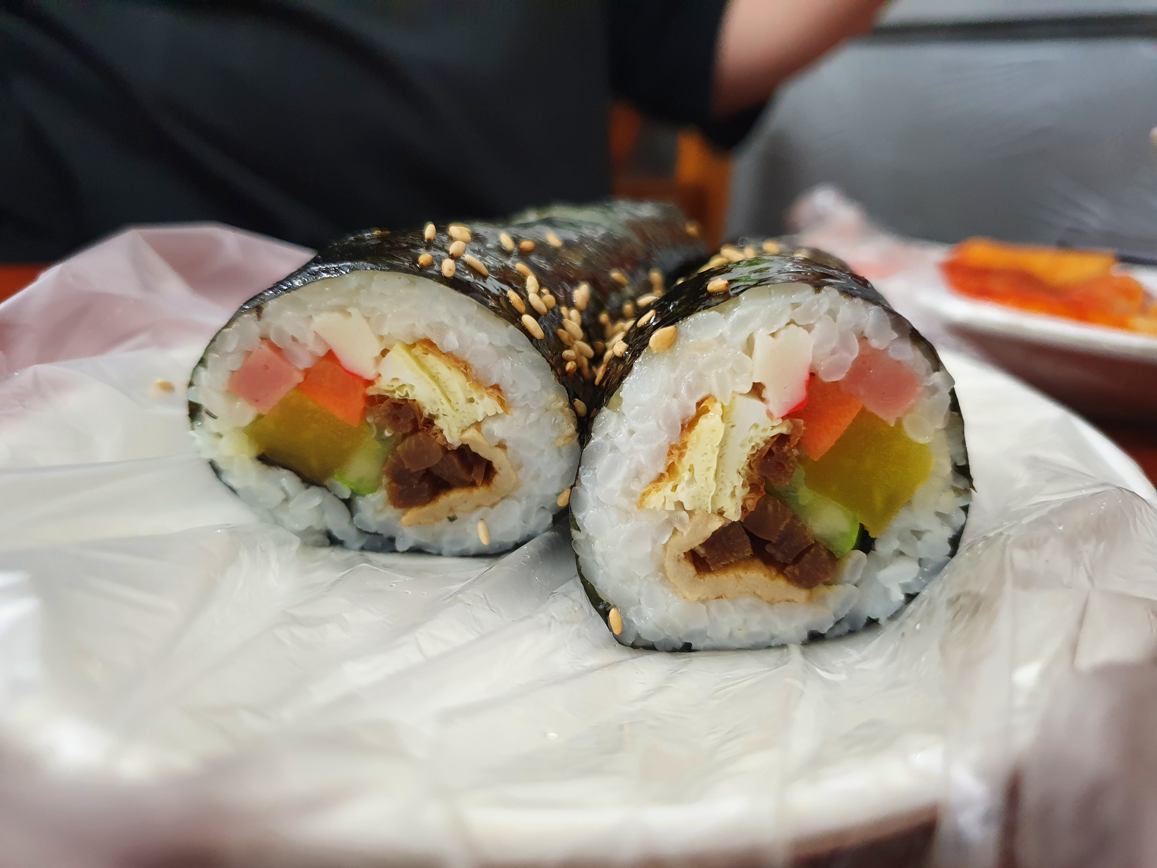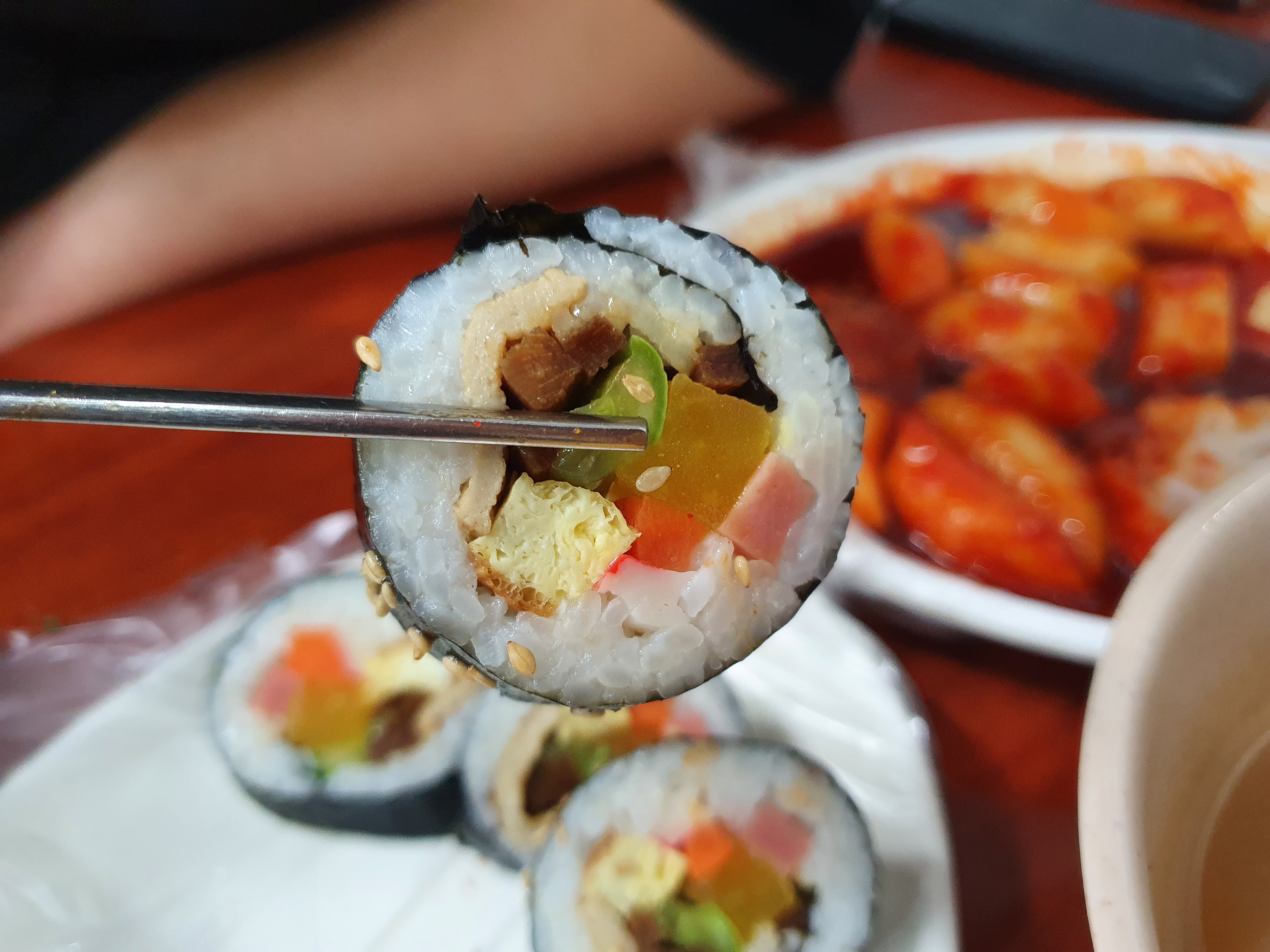 김밥은 집 김밥 느낌이예요. 김이 맛있어서 김밥도 정말 잘 먹엇어요.