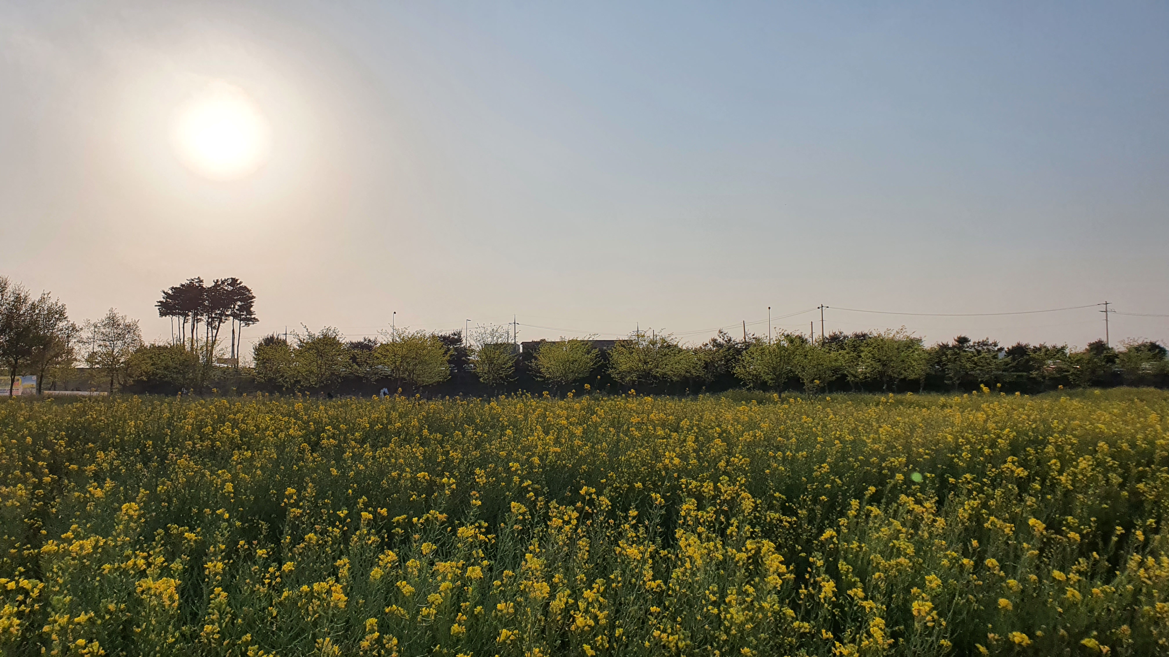 지는 석양빛 아래 유채꽃이 정말 이뻤어요.